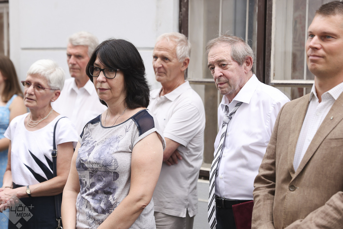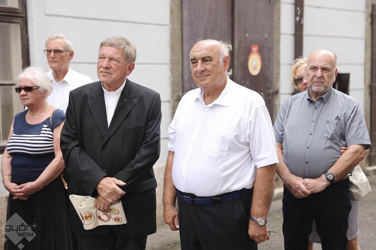 “Mindig fontos volt számára a családi háttér. A Bencés Gimnáziumban töltött nyolc év meghatározó volt életében. Büszkén vallotta magát győri bencés öregdiáknak, részt vett az osztálytalálkozókon, nagy öröm az öregdiák közösség számára, hogy emléktábláját a gimnázium fala őrzi. A 75 éve érettségizettek nevében is Laci bácsi gyújtotta meg az első gyertyát”-emelte ki Horváth József.