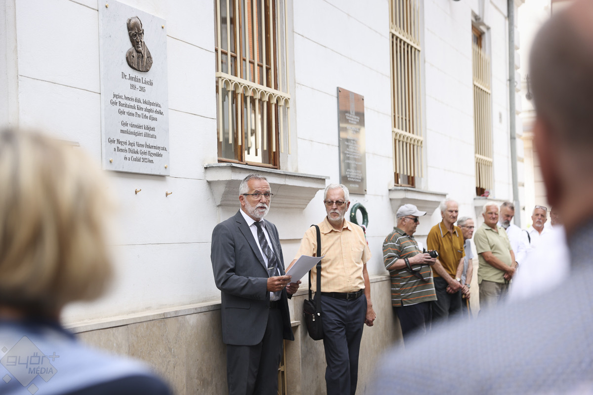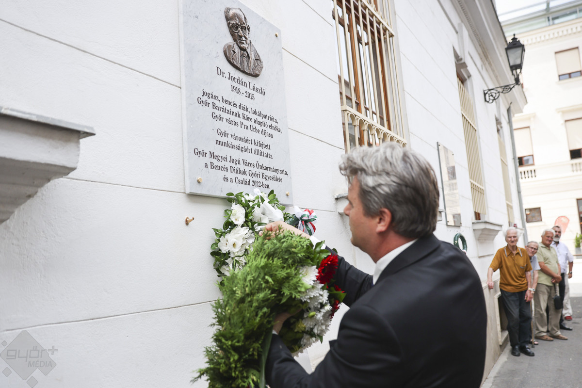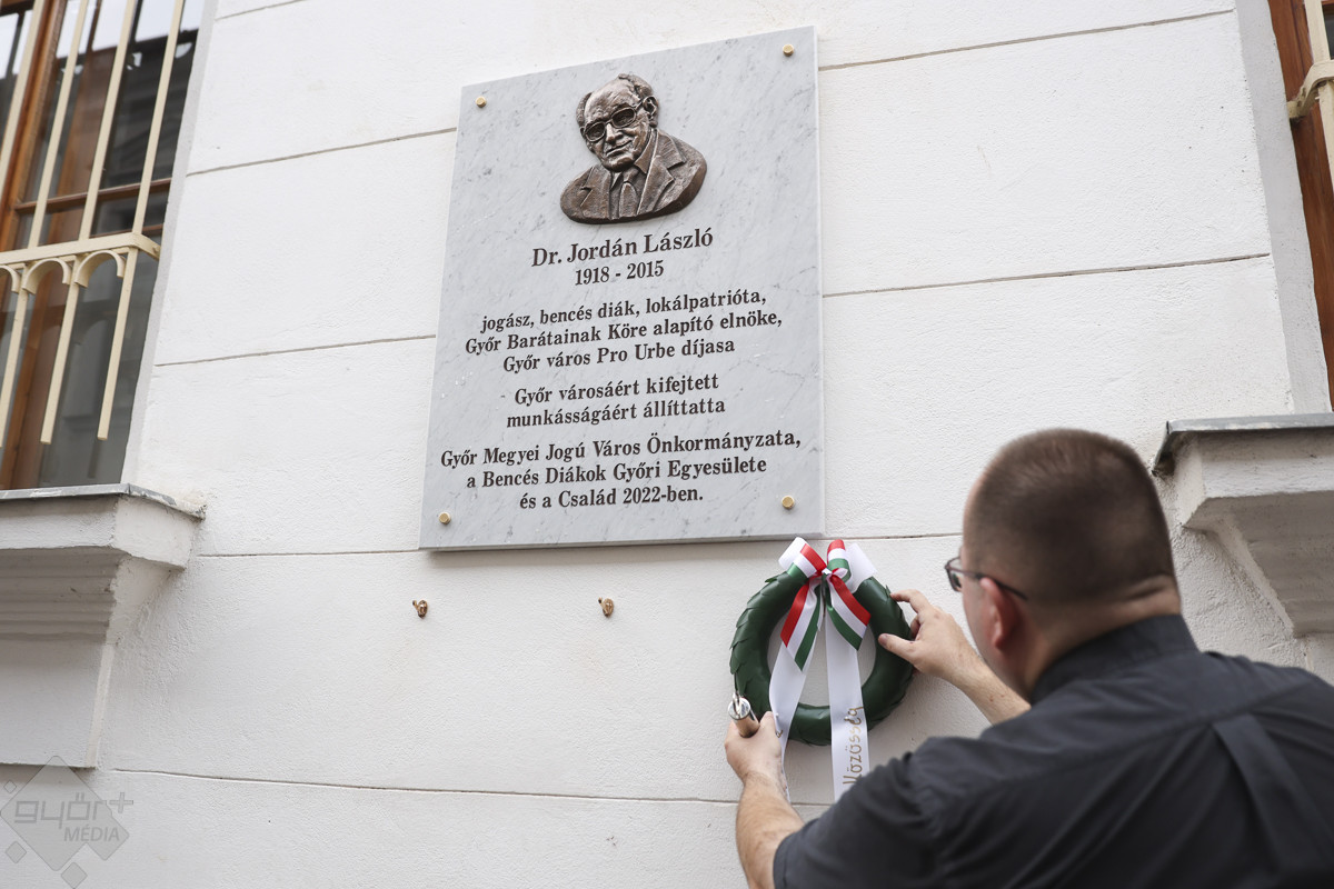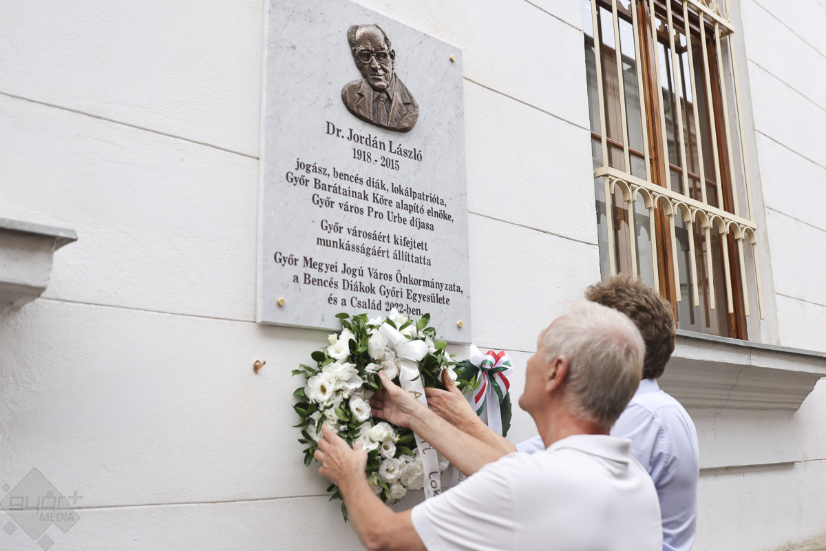 A város önkormányzata és a Bencés Diákok Győri Egyesülete emléktáblát állított Dr. Jordán László, jogász, győri bencés öregdiák, lokálpatrióta emlékére. A táblát-amely a Czuczor Gergely Bencés Gimnázium oldalfalára került-kedd délután avatták fel.