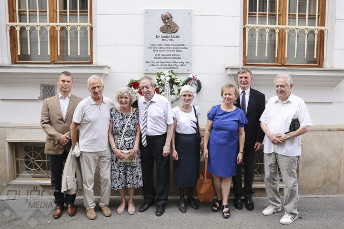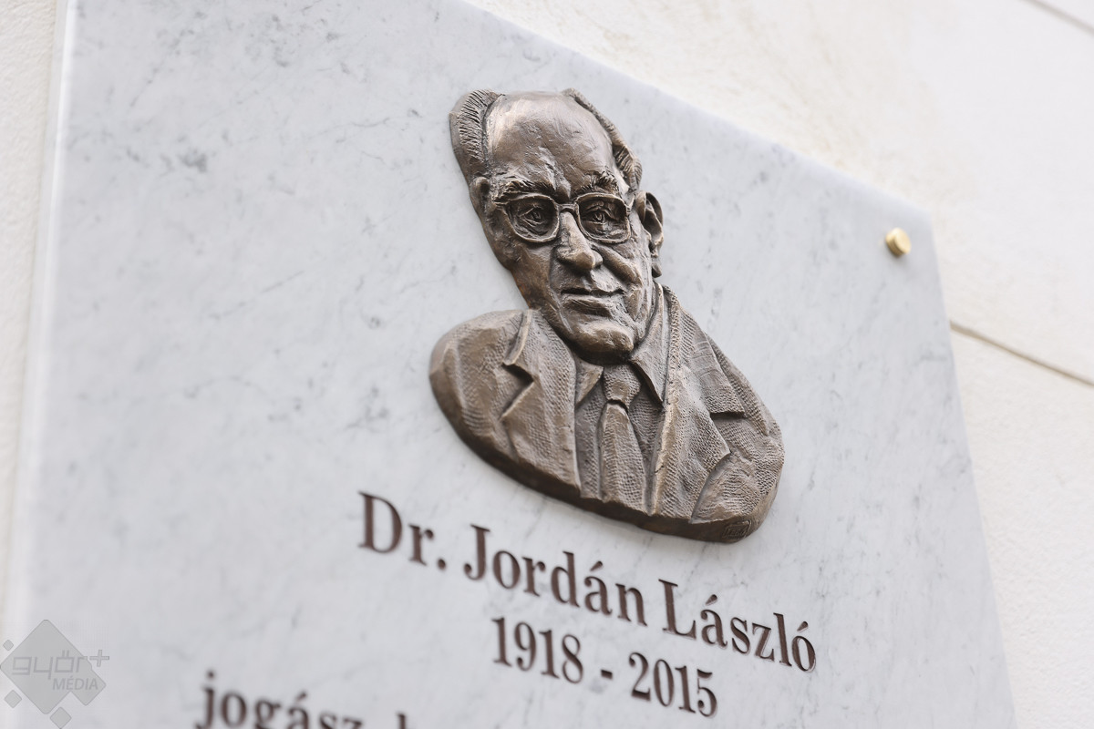 Az emléktáblát Lebó Ferenc szobrászművész készítette. Az ünnepélyes avatáson elsőként Dr. Jordán László legidősebb fia, a színész Jordán Tamás szólalt fel. “Köszönetet mondok mindenkinek, aki kivette részét abban, hogy ez az emléktábla felkerülhessen. Annak ellenére, hogy 1946 óta Budapesten éltek, szüleink győriek maradtak, eltéphetetlen szálak kötik őket ehhez a városhoz, mely nekem is és László öcsémnek is szülővárosa. Édesapánk a Győr Barátainak Köre Egyesület alapítója feleségével, édesanyánkkal“-emelte ki meghatottan Jordán Tamás, aki arról is beszélt, hogy édesapja bár nem beszélt a halálról, nem is félt tőle. A színész édesanyjukról is megemlékezett, aki 103 éves korában hagyta itt őt négy testvérével.