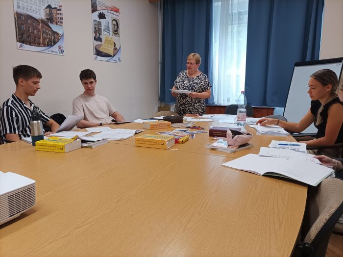 Kiscsoportos németóra zajlott szerda délelőtt Győr egyik kedvelt nyelviskolájában. Népszerűek a nyári, szünidei képzések, ilyenkor a tapasztalatok szerint, még motiváltabbak a fiatalok. ”Sokféle nyári nyelvi kurzust biztosítunk a fiatalok számára, ilyenkor a tapasztalataink szerint a hőség és a szünet ellenére még motiváltabbak a diákok, jól tudja minden család, pontosan milyen fajta tudásra van szüksége a gyereknek és ez alapján választanak a nyelvi kínálatból” – mondta Hatos Hajnalka. A nyári nyelvtanulás még intenzívebb tud lenni, mint az év közbeni, tanórai képzés. Tanár és diák is élvezi a szünidei nyelvórákat.