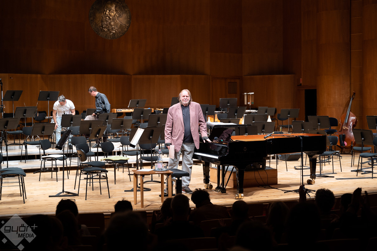 Teltházas koncertre készül szerda este a Győri Filharmonikus zenekar, ezúttal Rick Wakemannel, a legendás Yes együttes billentyűsével lépnek színpadra, ahol a 72 éves művész szerzeményeiből és néhány világhírű rock, pop és beat együttes átdolgozott dalait játsszák majd el a nagyérdeműnek. A koncert főpróbáját kedd este tartották a Richter-teremben.