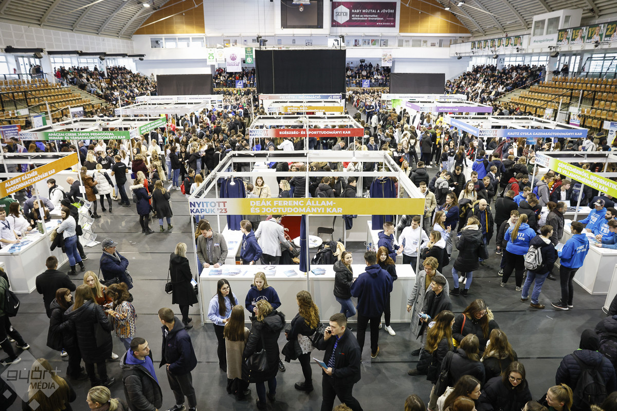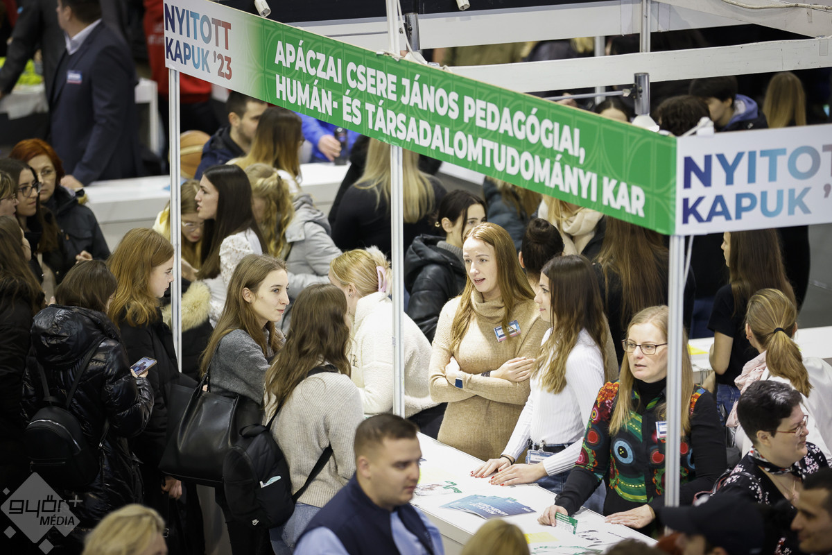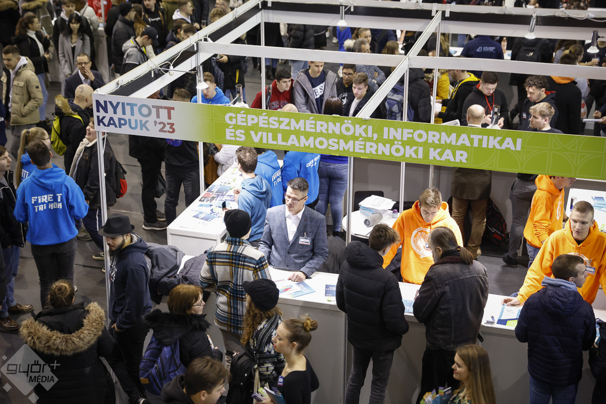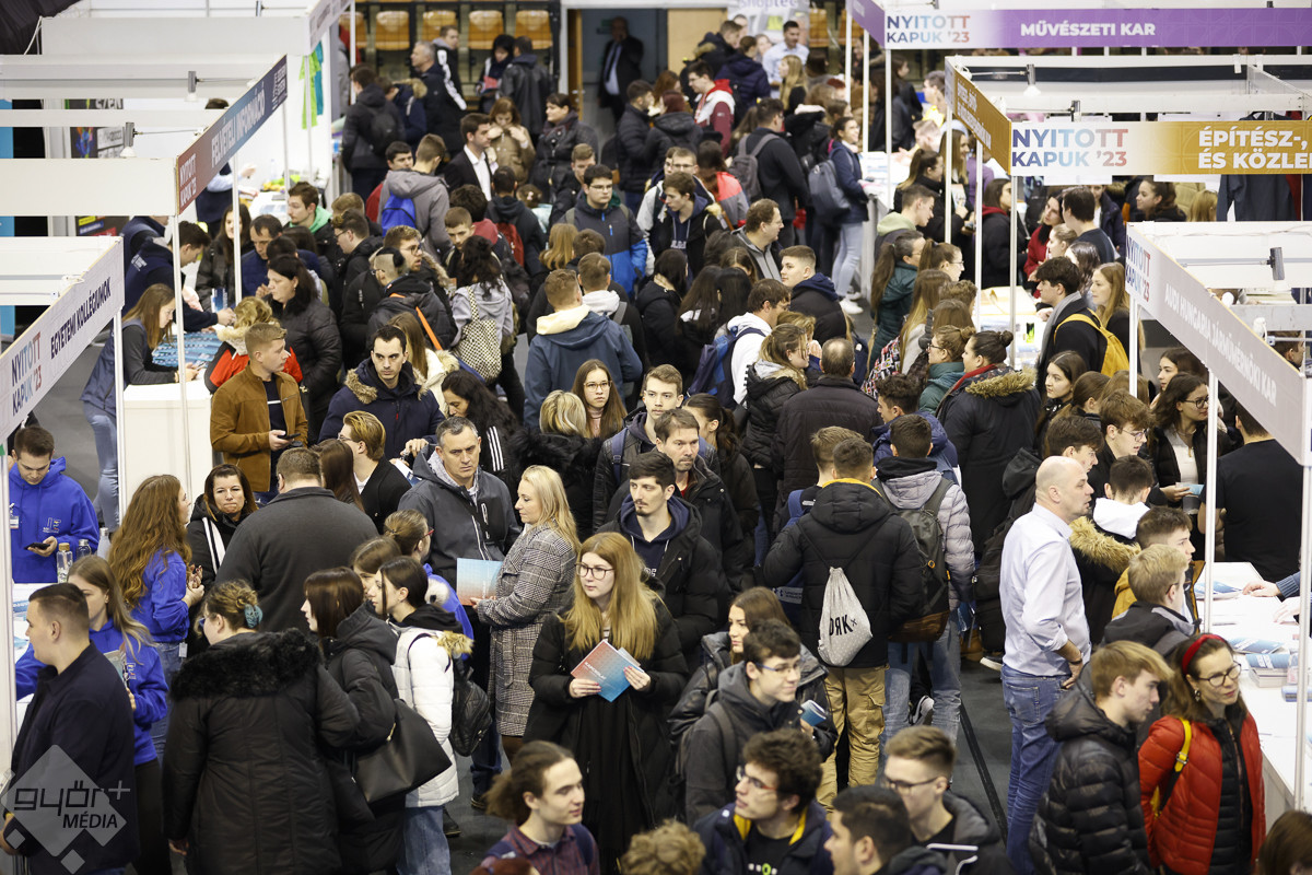 Óriási érdeklődés mellett zajlott a Széchenyi István Egyetem nyitott kapuk rendezvénye kedden. A korábbiakkal ellentétben ezúttal az Egyetemi Csarnokba várták a továbbtanulásra készülő fiatalokat és szüleiket. Több mint 5000 középiskolás érkezett a campusra, őket különböző tájékoztatók, beszélgetések és laborlátogatások várták a rendezvényen. A Széchenyi kancellárja tájékoztató előadásában úgy fogalmazott, érdemes komoly mérlegelés után dönteni arról, hol tanulnak tovább a fiatalok.