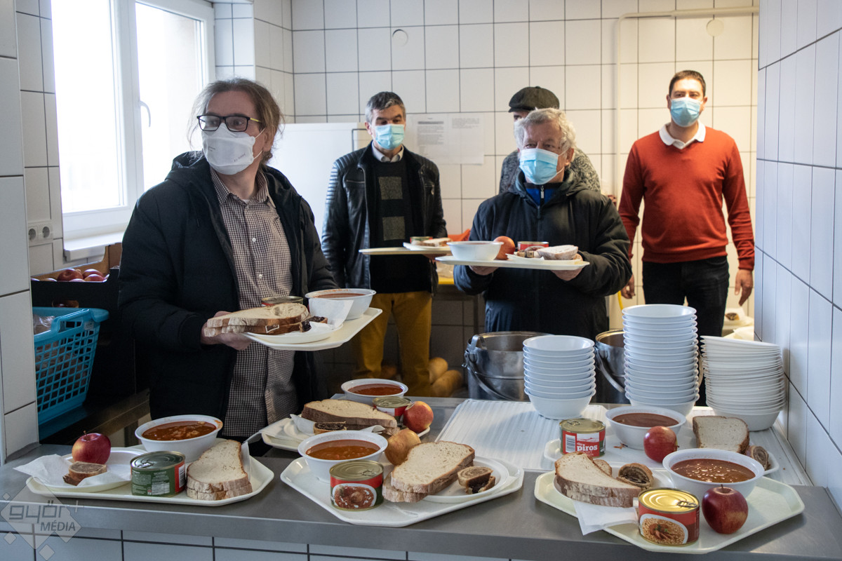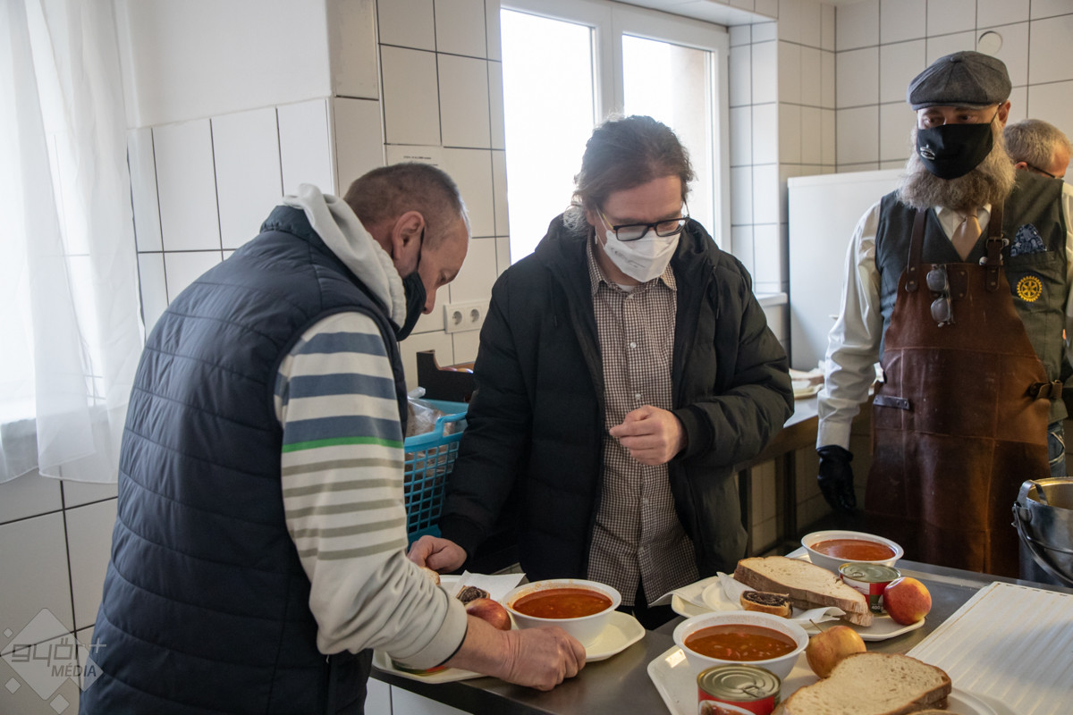 A győriekhez idén a pannonhalmi rotarysok is csatlakoztak. 80 adag babgulyás volt a meglepetés menü, amit étteremben főztek, majd vittek el a hajléktalanokat segítő szolgálat Szarvas utcai nappali centrumába. A gulyás mellé almát, süteményt és sóletkonzervet is kaptak a rászorulók.