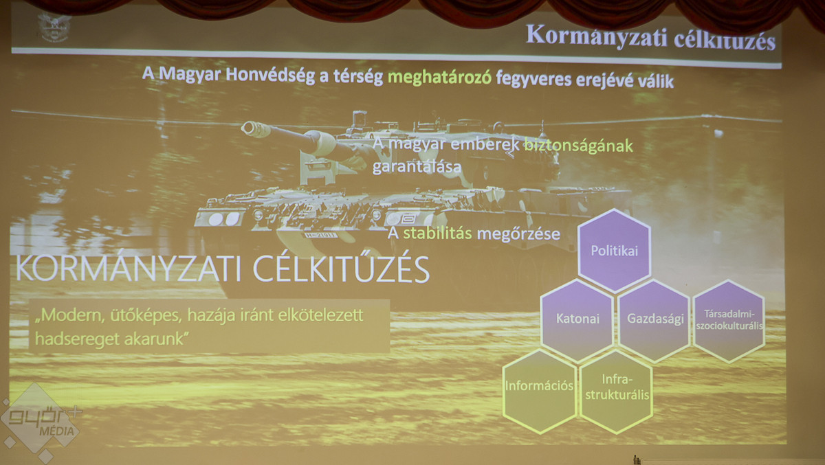 A Magyar Honvédség jelenlegi helyzetéről, jövőjéről és a haderőfejlesztésről Somogyi Zoltán vezérőrnagy, a Honvéd Vezérkar törzsigazgatója tartott részletes előadást a jelenlevőknek, amelyből kiderült, hogy nem elég csupán a megfelelő eszközökkel felszerelni a hadsereget, hanem megfelelően képzett és elhivatott katonákra van szükség. A toborzók feladata ezért is igencsak fontos, hiszen a fiatalokat be kell vonzani a Magyar Honvédség kötelékébe, az alakulatoknak pedig meg kell tartaniuk őket. Ehhez szükségesek a megfelelő munkakörülmények, a megfelelő eszközök, a képzések és a megfelelő fizetés is.