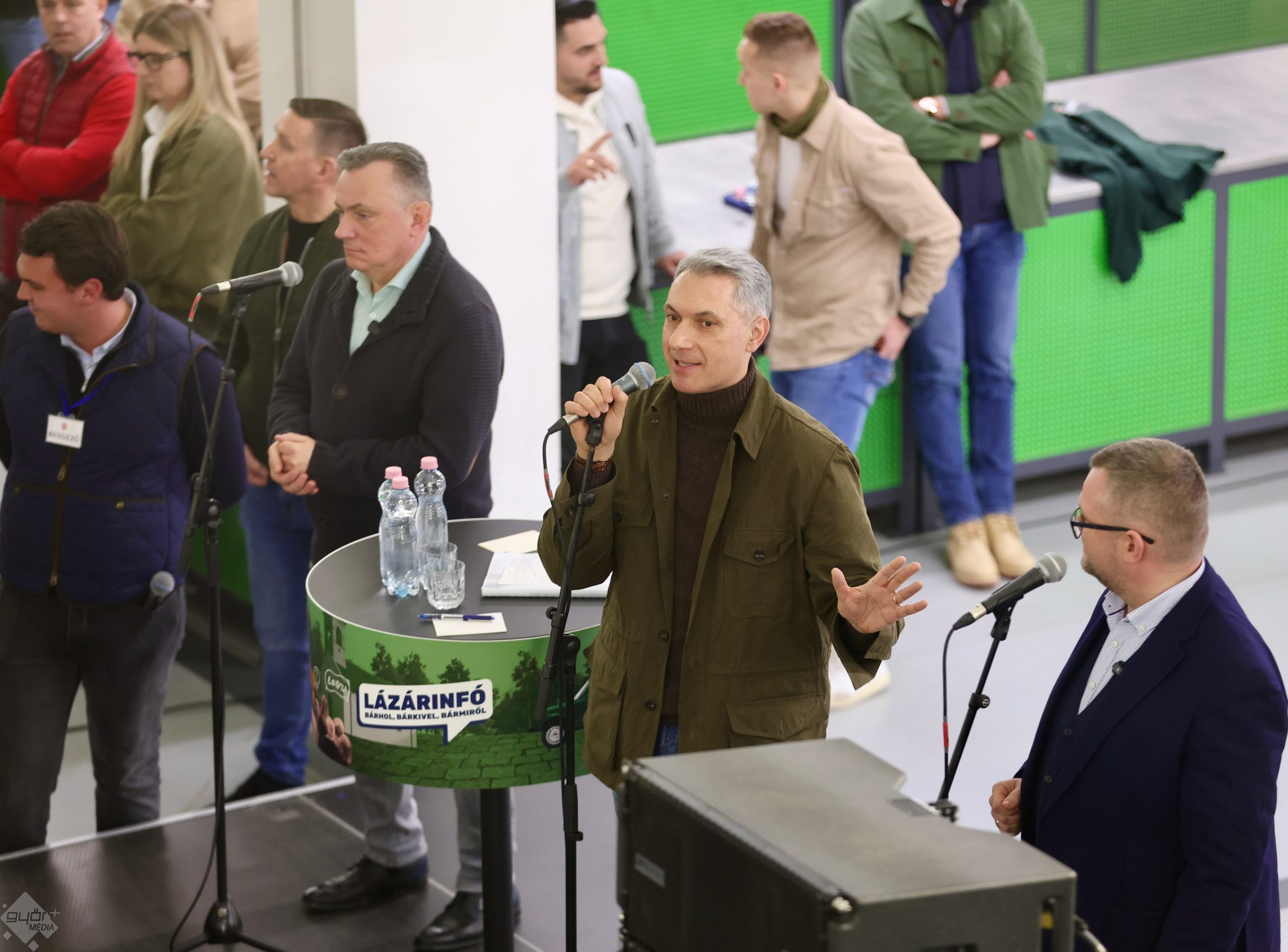 „Ne engedjék, hogy a Tisza aktivistái káoszba döntsék ezt a beszélgetést, a várost. Ne hagyják egymás ellen uszítani magukat!” – figyelmeztetett az építésügyi és közlekedési miniszter, mindenkit arra kérve pártállástól függetlenül, hogy menjen el szavazni áprilisban. Sajnálatát fejezte ki, hogy olyan városban élnek a győriek, ahol három részre szakadt a közösség (utalva a legutóbbi helyhatósági választások eredményére, ahol a három polgármester-jelöltre közel ugyanannyian voksoltak). „A megosztottság nem viszi jó irányba a várost, a megosztottságból, erőszakból nem születik egy munkahely sem” – hangsúlyozta Lázár.