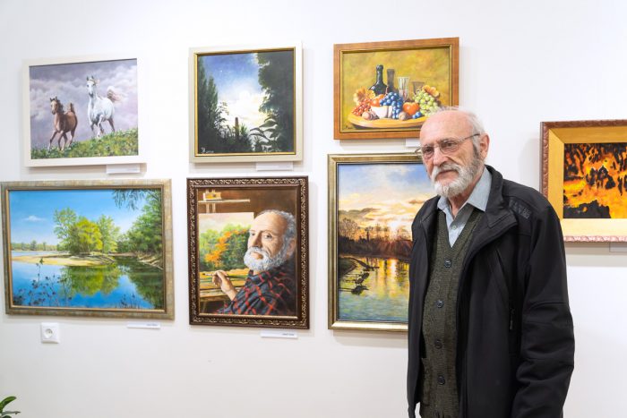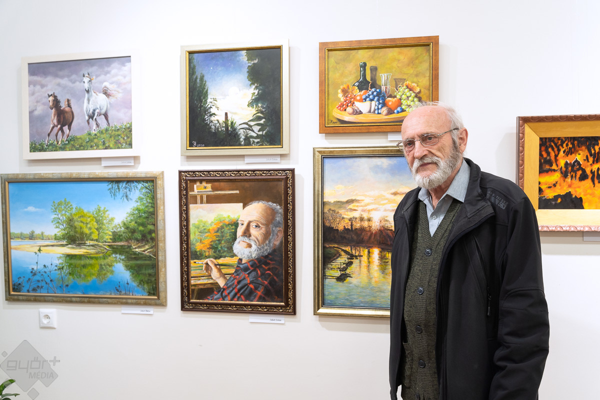 Jakab Zoltán második alkalommal vesz részt a kiállításon, hat festménnyel érkezett, melyek között önarcképét is láthatjuk. Zoltán fiatal korában győri művészektől, rajzkörökben tanult meg festeni, de a textiliparban vezetőként eltöltött évtizedekben nem jutott ideje a művészetekre. Nyugdíjba vonulásakor beszerezte a szükséges felszerelést és immár 152 festménnyel büszkélkedhet, melyek között csendéletek, tájképek és portrék is megtalálhatók. „Én magam is meglepődtem, amikor nyugdíjasként újra festeni kezdtem, hogy úgy megy, mint fiatal koromban, azóta is szenvedéllyel alkotok” – mesélte Jakab Zoltán.
