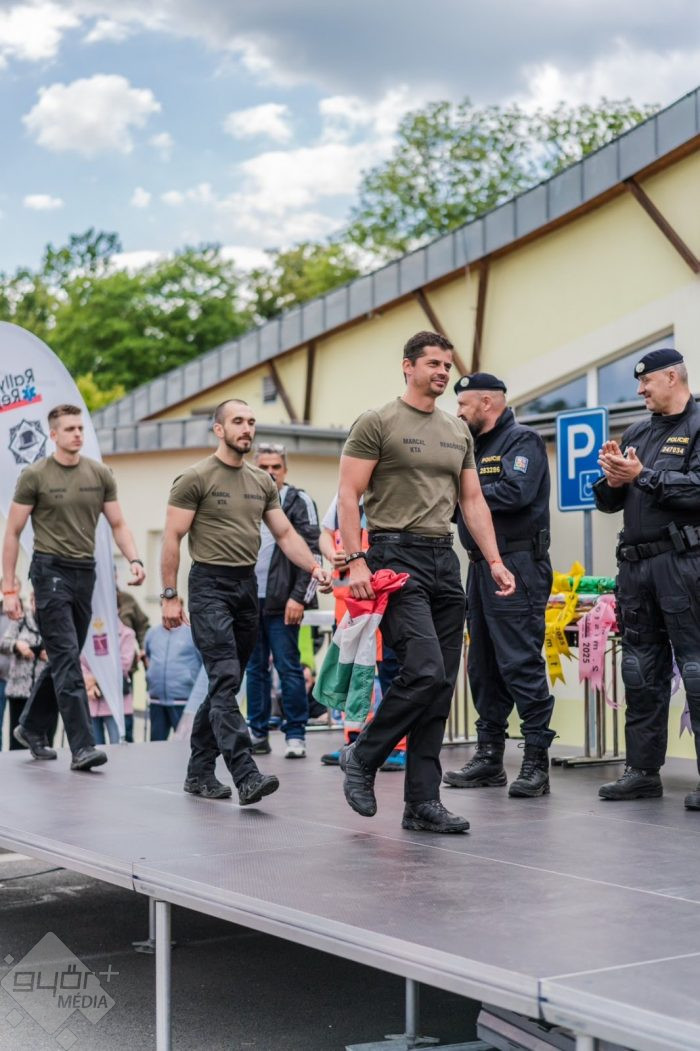 Magyarországról a Győr-Moson-Sopron Vármegyei Rendőr-főkapitányság állományához tartozó Kiss Tivadar százados, Tóth Balázs törzsőrmester és Völgyes Patrik törzsőrmester utazott el Csehországba, ahol a 20 rendőrcsapat közül az összesítésben és nemzetközi kategóriában is az első helyezést érték el. Kimagasló teljesítmény ez a győri zsaruktól, s ahogy a Győr+ Médiának meséltek a verseny részleteiről, tisztán látszott: nekik ez nemcsak egy erőpróba, nemcsak egy első helyezés, hanem megerősítés és egyben motiváció is ahhoz, hogy munkájukat minden egyes nap a legmagasabb szinten végezzék. Hiszen a lécet ők maguk tették ilyen magasra…