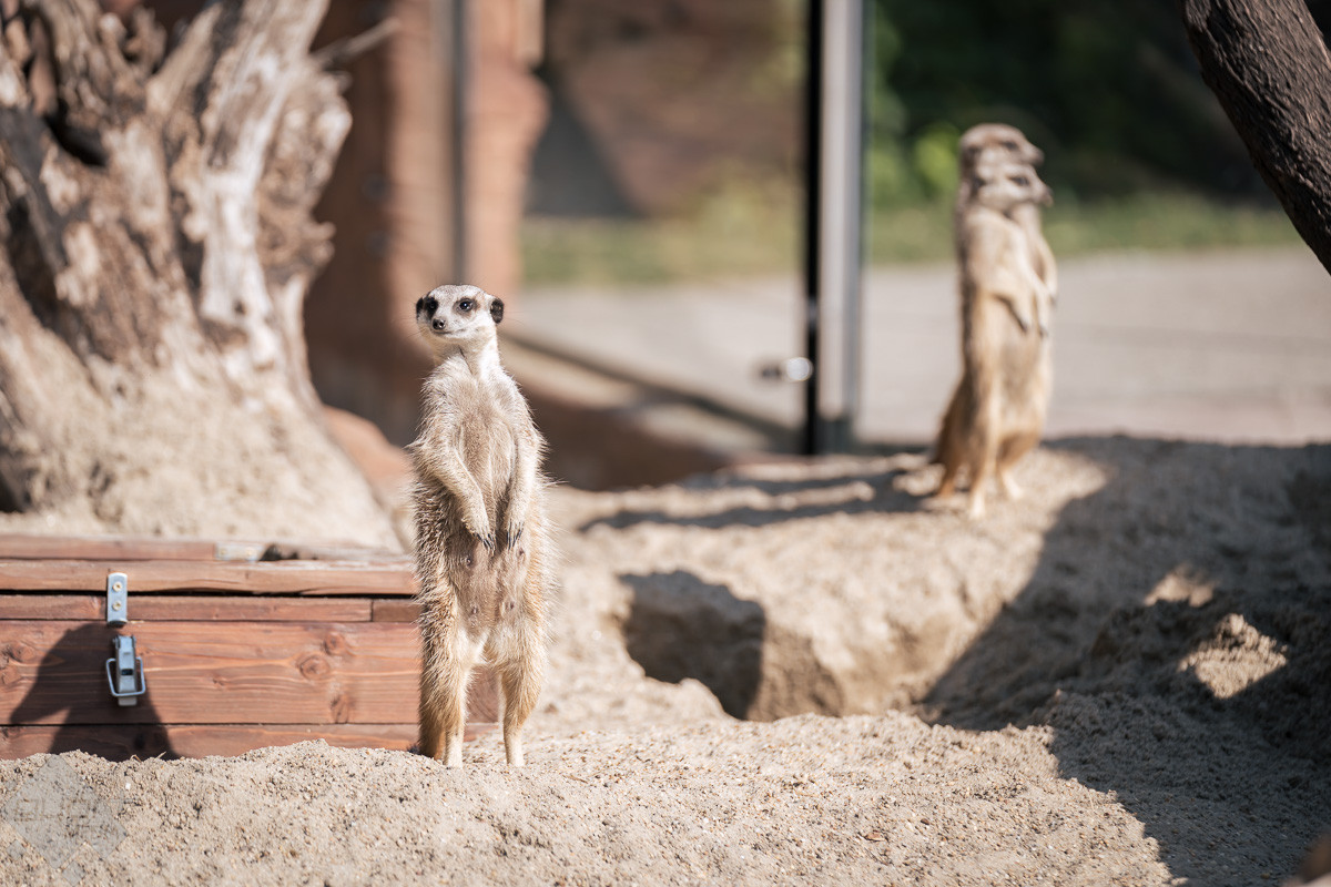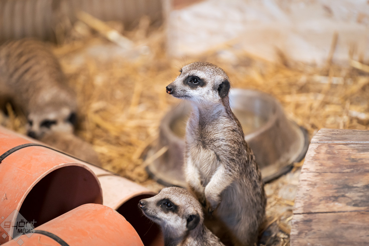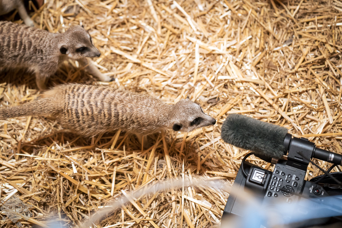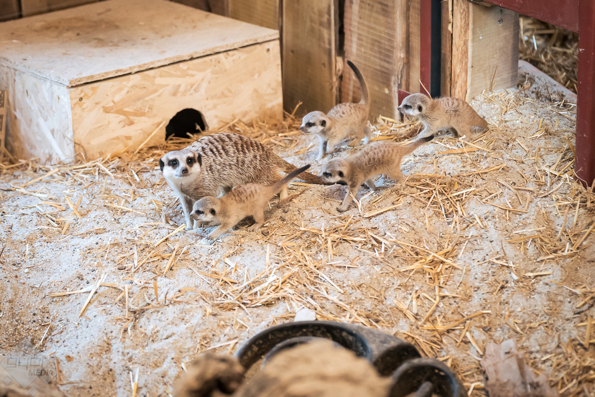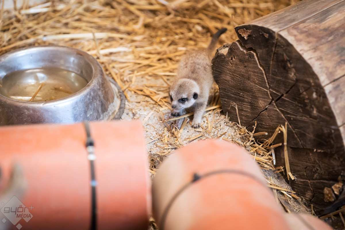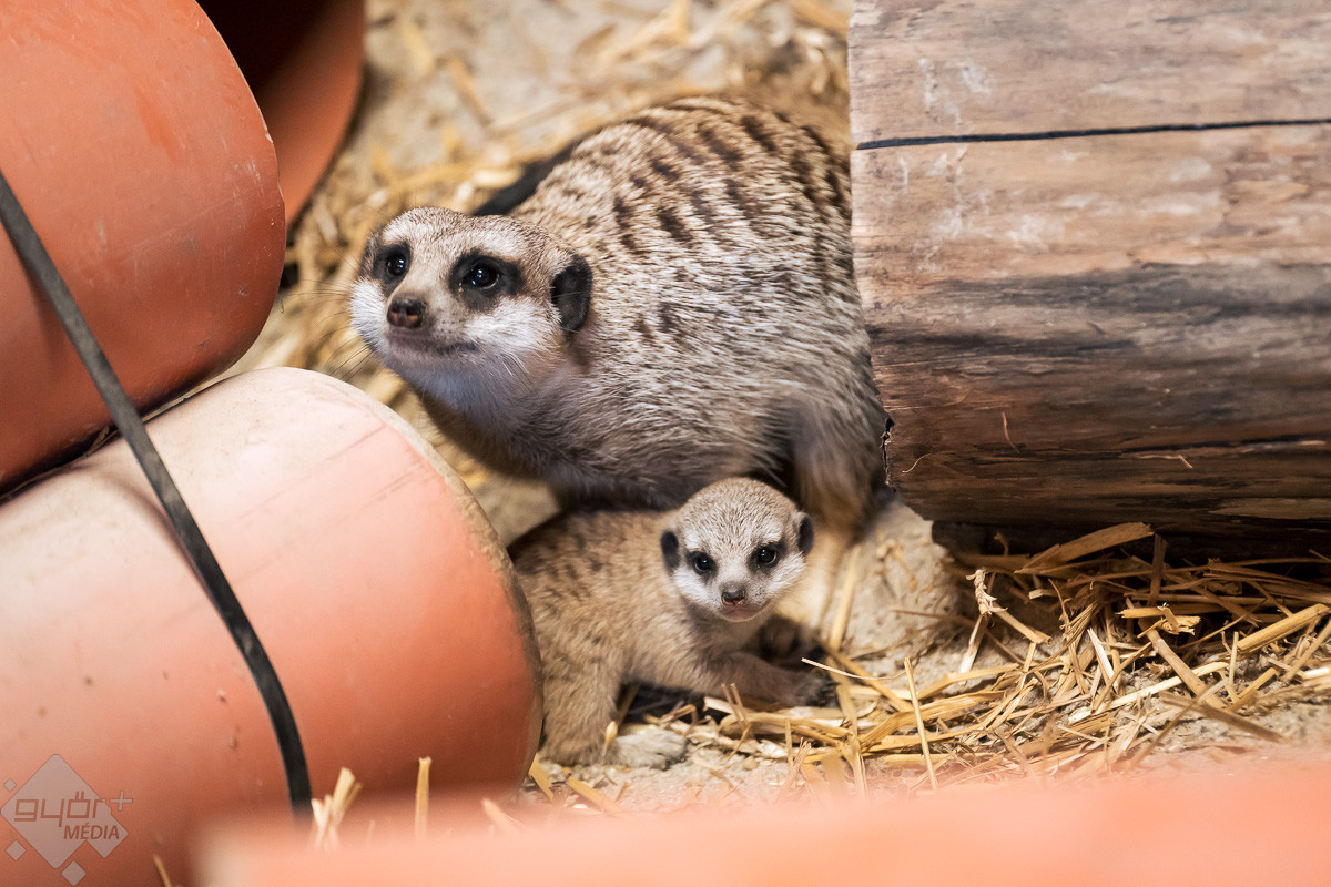 Wenczel Flóra zoopedagógus örömmel mutatta be a Győr+ stábjának az új jövevényeket. „Mi is teljesen el vagyunk ámulva, hiszen csak néhány hónapja vehették át a kifutójukat. Néha már előfordul, hogy a szüleik kihozzák őket nézelődni a külső kifutójukra” – mesélte Flóra. A kicsik a nap jelentős részét még a belső terekben töltik úgy, ahogyan azt a gyerekek szokták: esznek, alszanak és már játszanak is. „Már látszik, hogy ki lesz közülük a domináns. Ő mindig az édesanyját követi, megy utána. A szurikáták nagyon érdekes családi környezetben növekednek. Természetes közegükben néhány család alapít nagyobb, körülbelül harminc fős kolóniát. Mindegyik családnak van alfahíme és –nősténye, ők szaporodnak és a kolónia tagjai együtt nevelik fel a kölyköket” – tudtuk meg a zoopedagógustól.