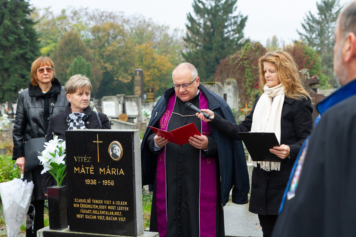 A borús időjárás ellenére sokan rótták le tiszteletüket pénteken az újvárosi temetőben, ahol az Újvárosi Művelődési Ház tartotta megemlékezését. Az 1956-os forradalom és szabadságharc áldozataira, győri hőseire emlékeztek az egybegyűltek, elsősorban Máté Máriára és Szabó Bélára, hiszen a fiatalon elhunyt hősök a Bécsi úti sírkertben nyugszanak.