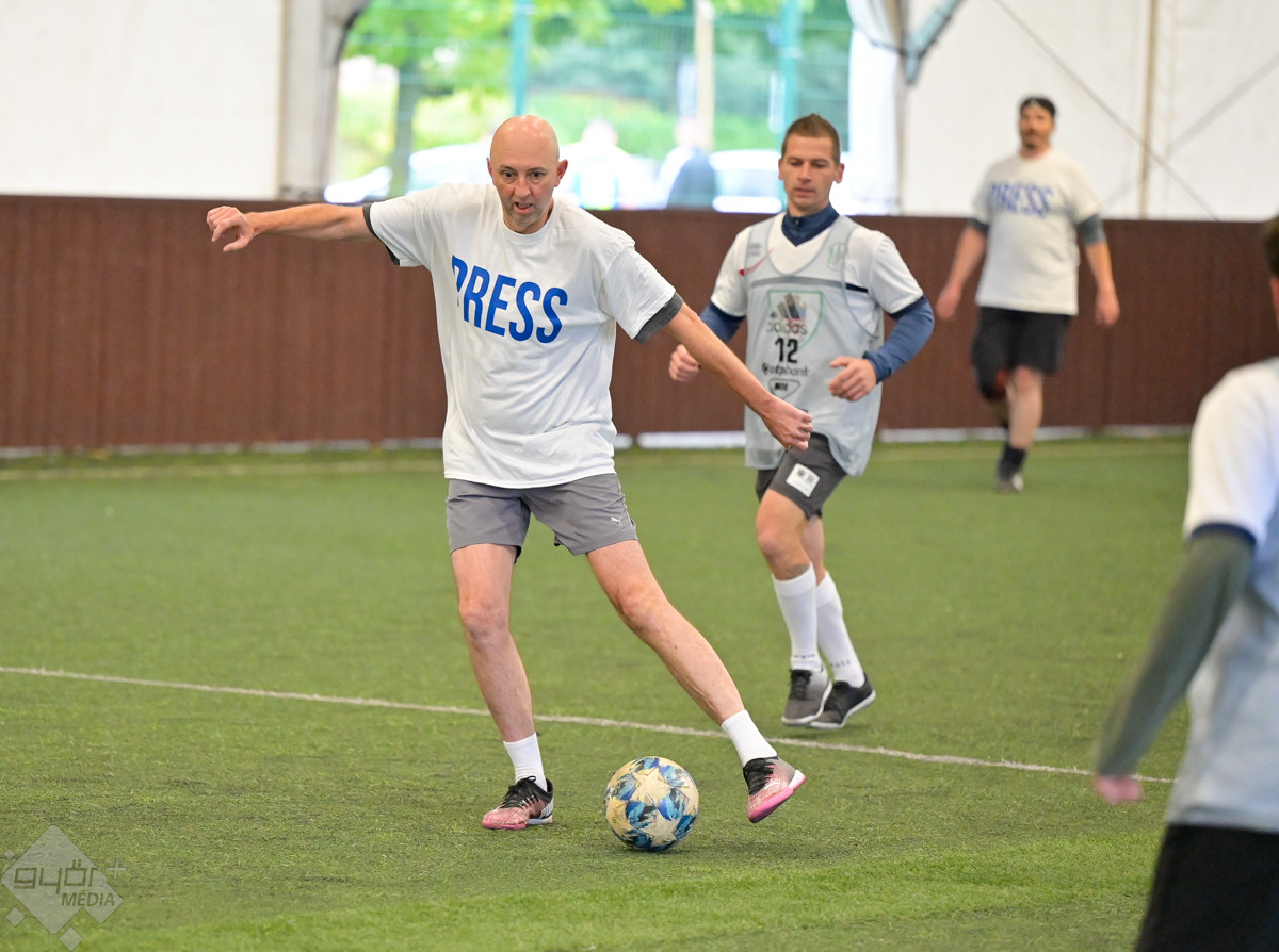 A kispályás focin – a Barátság Sportparkban – a médiaválogatott tagjai között, a figyelmes szurkolók néhány ismerős arccal is találkozhattak. A Győr+ Médiát képviselve Konrád Sándor, Mireider Máté, Ficsór Dávid, Tóth Balázs is a labda nyomába eredtek, néhány kollégával kiegészülve remekeltek a korántsem amatőr mezőnyben! A Győr Pluszos kollégák nem csak lecsót főznek mesterien, de a focilabdával is jól bánnak!