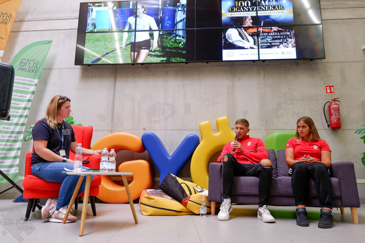 “Mindenféleképpen szerettük volna a családokat megszólítani, megmozgatni, az pedig egy fantasztikus adottság, hogy itt a csodálatos Olimpiai Sportpark. A komplexum számos lehetőséget rejt magában, éppen ezért egy kiváló új helyszíne lehet ennek a rendezvénynek. Kiváló, európai szintű futópálya van kiépítve, fointos, hogy azt használjuk is, fontos számunkra, hogy megismertessük a győriekkel a létesítményünket, és hogy milyen, akár szabadidős sportokat lehet ezen a helyen gyakorolni” – számolt be Szombati-Serfőző Eszter a Győr Projekt Kft. ügyvezetője, aki hozzátette: a szombati napon lehet például nyílt torna valamint atlétika edzést látogatni, emellett különböző küzdősport bemutatók is várták az érdeklődőket, de volt pickelball, aerobik és zumba is. “Szintén új elemként bevontuk az uszodát is, ott amatőr úszóversenyt szervezünk, lesznek vízilabda mérkőzések, szóval számtalan programmal várjuk a győrieket.“- tette hozzá a főszervező.
