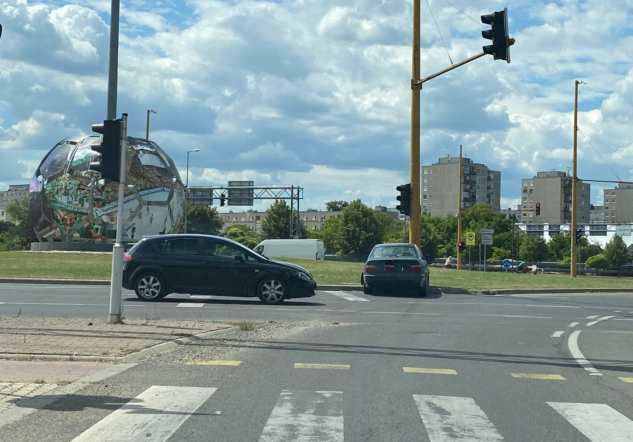 Olvasónk jelezte, hogy nem sokkal ezelőtt baleset történt a Fehérvári út körforgalomban. Azt írta egy személyautó hajtott neki egy jelzőlámpa oszlopának. A helyszínről fotót is küldött.