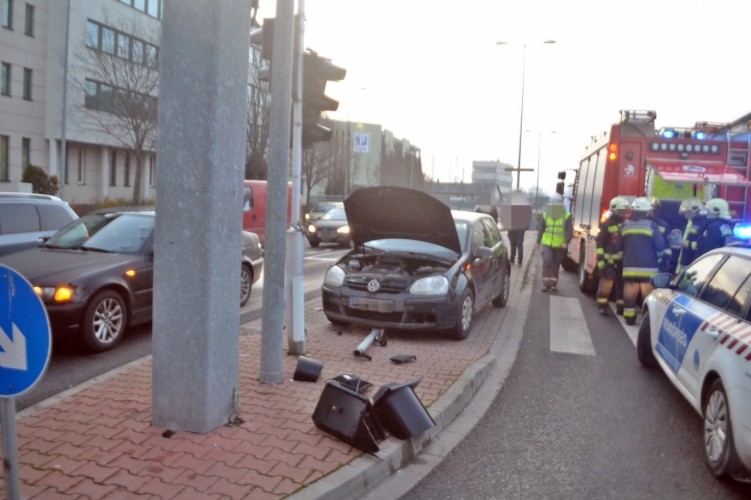 Intenzív fékezés miatt vesztette el uralmát járműve felett a sofőr hétfőn Győrben.