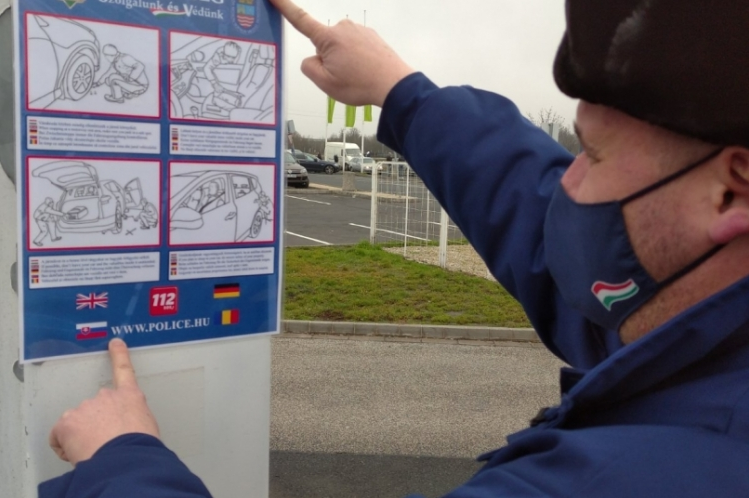 A Győr-Moson-Sopron Megyei Rendőr-főkapitányság Bűnmegelőzési Osztályának szakemberei, a Győr-Moson-Sopron Megyei Polgárőrséggel közösen szerveztek figyelemfelhívó akciót a trükkös lopások megelőzése érdekében az M1-es autópálya megyei szakaszán, 2020. december 18-án.