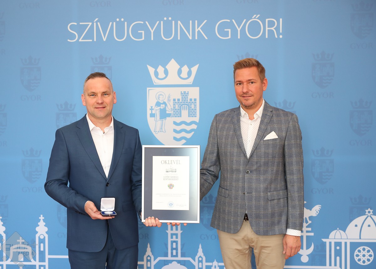 Nagykutasi Viktor ugyancsak okleveleket adott át a győri szervezet nevében azoknak, akik hozzájárulnak munkájuk sikerességéhez. Ezt az elismerést vehette át munkatársunk, Ferenczy Balázs is, aki többek között a Győr+ Média Kertbarát magazinjának vezetésével is segíti a nemes küldetést.