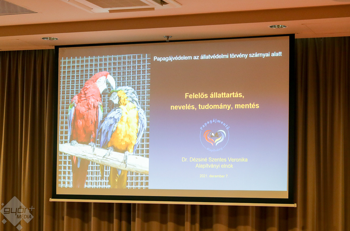 A „Papagájvédelem az új állatvédelmi törvény szárnyai” alatt című győri konferencián bemutatták a leendő papagájvédelmi központ terveit és céljait.