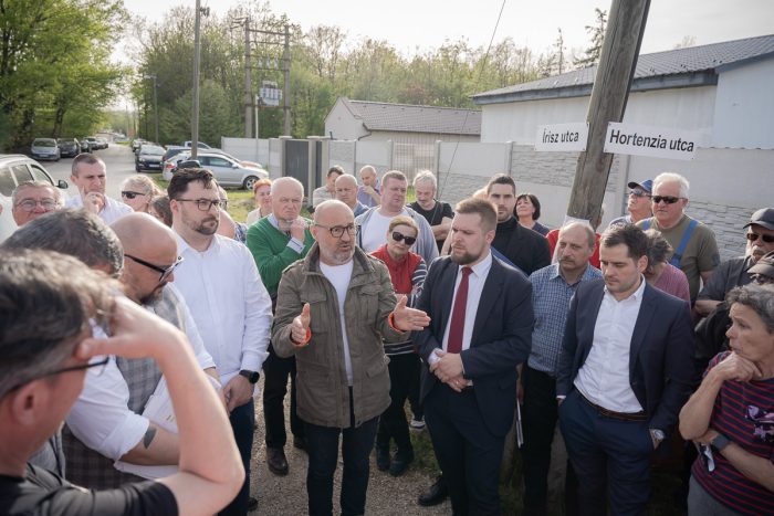 Délután öt órára megtelt az Írisz és a Hortenzia utcák kereszteződése emberekkel. Pintér Bence polgármester hirdetett lakossági fórumot erre az időpontra. A helyiek közül sokan kinyomtatott jogszabályokkal, helyi rendeletekkel érkeztek, hogy érdemi válaszokat kapjanak kérdéseikre.