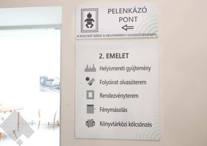A könyvtárban tábla jelzi, hogy hol található meg az önfertőtlenítő pelenkázó asztallal ellátott, szoptatásra is használható, kulccsal zárható helyiség. A családsegítő fejlesztés dr. Fekete Dávid és Takács Krisztián önkormányzati képviselők keretéből valósult meg.