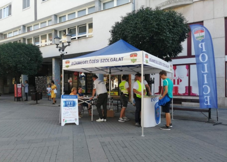 Győr belvárosában augusztus 26-án, a helyi rendőrkapitányság bűnmegelőzési munkatársai a megjelent érdeklődőkkel egy csésze kávé mellett beszélgettek az állampolgárok szubjektív biztonságérzetét leginkább befolyásoló témákról. Immáron huszonegyedik alkalommal állította fel standját – most Győr sétálóutcájában – a bűnmegelőzési szolgálat, ahol a gyalogosokkal párbeszédet kezdeményeztek, elsősorban vagyonvédelmi lehetőségekkel kapcsolatban. A prevenciós szakemberek munkáját közösségi szolgálatot ellátó diákok is segítették.