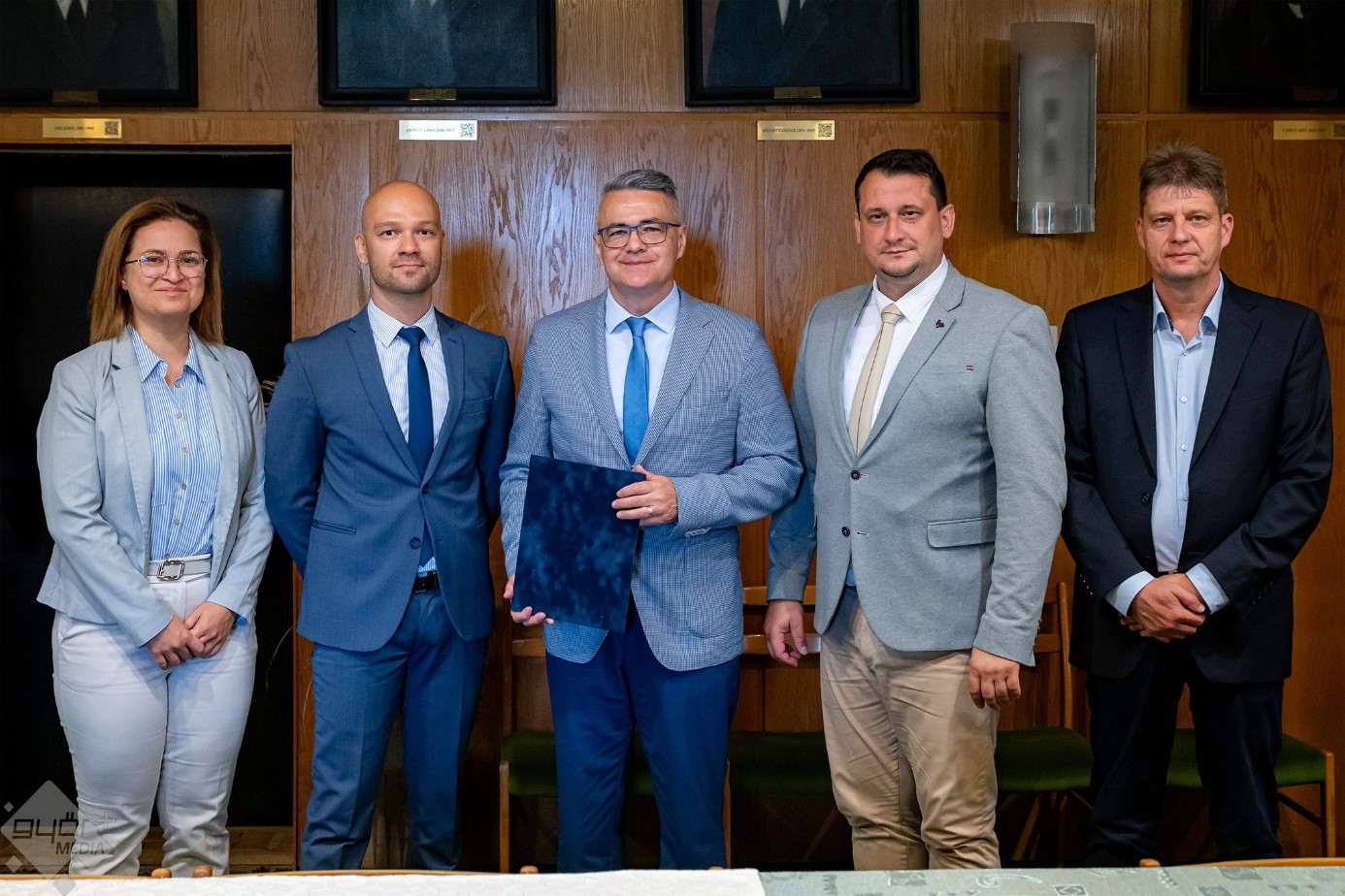 Nyitókép: Németh Flóra, a Livestocker Solutions Kft. termékfelelőse, Németh Norbert, a cég exportigazgatója, dr. Tóth Tamás, a Széchenyi István Egyetem Albert Kázmér Mosonmagyaróvári Karának dékánja, dr. Ásványi Balázs vállalati kapcsolatokért felelős dékánhelyettes és dr. Húth Balázs, az Állattudományi Tanszék vezetője az együttműködés bejelentésén.