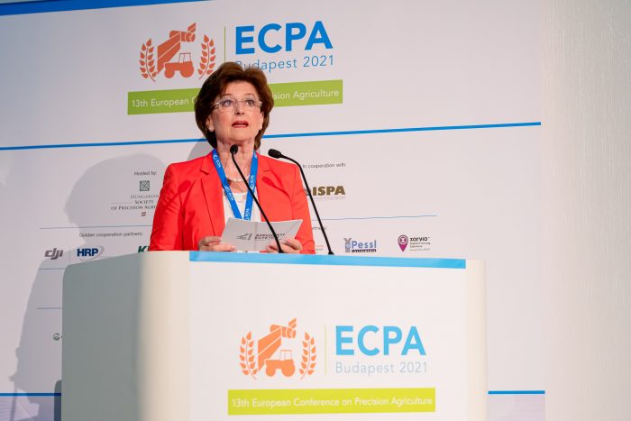 Az államtitkár hozzátette: a precíziós gazdálkodás alkalmazásához elengedhetetlen a gazdálkodók felkészültsége, ezért mindent meg kell tenni, hogy mérettől és ágazattól függetlenül minél többük számára elérhetővé váljon ez a tudás. „Ehhez két fontos eszközt kell biztosítanunk. Az egyik, hogy a kapcsolódó elméleti és gyakorlati ismeretek oktatását szervesen be kell illesztenünk az agrárszakképzés és -felsőoktatás, valamint a felnőttoktatás rendszerébe. A másik, hogy elérhetővé kell tenni a technológiát és a kapcsolódó szolgáltatásokat minden gazdálkodó számára. Ehhez 100 milliárd forint, azaz 280 millió euró keretösszeggel hirdettünk meg olyan pályázati lehetőséget mezőgazdasági termelőink számára, amelynek révén precíziós fejlesztéseiket tudjuk támogatni” – közölte.