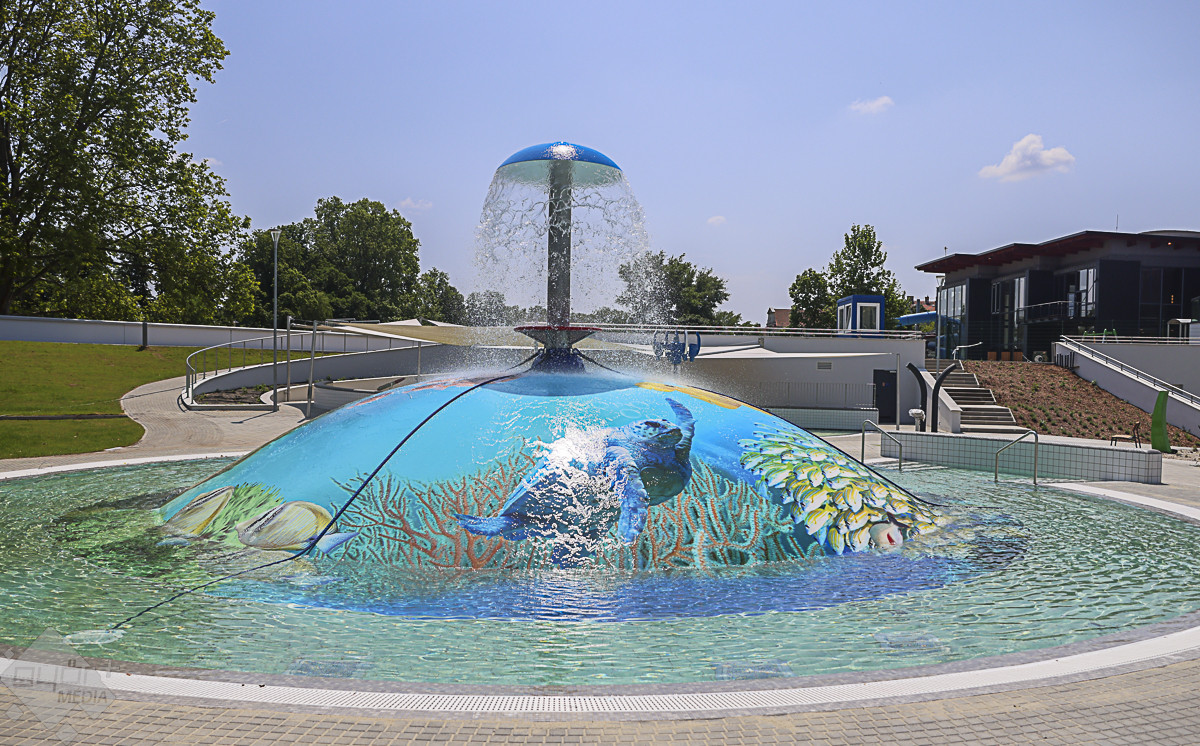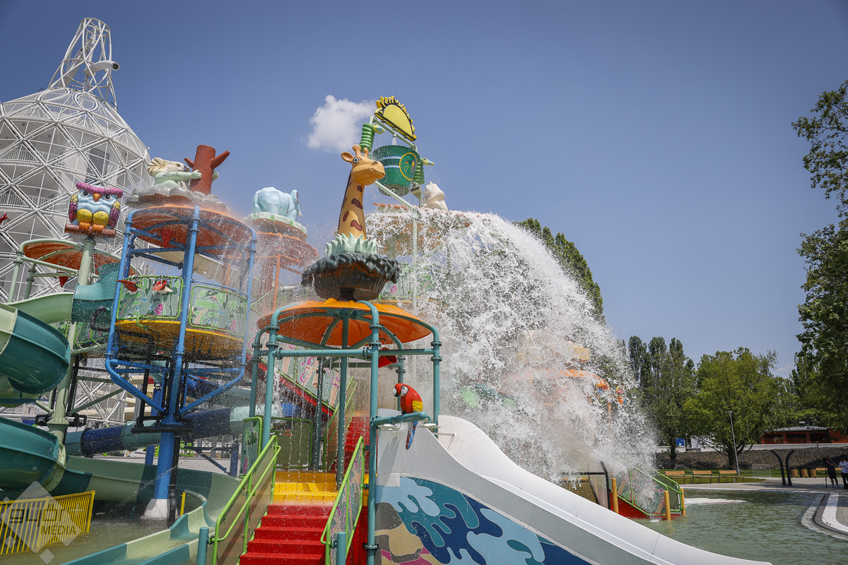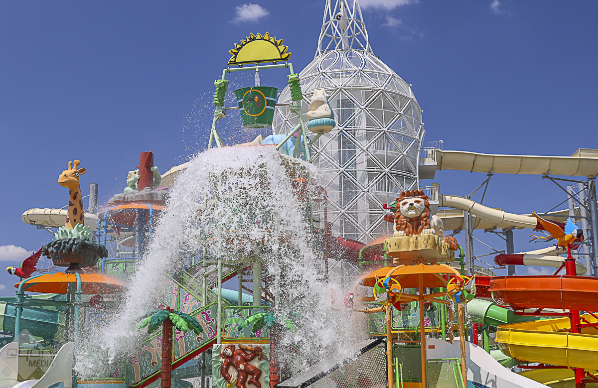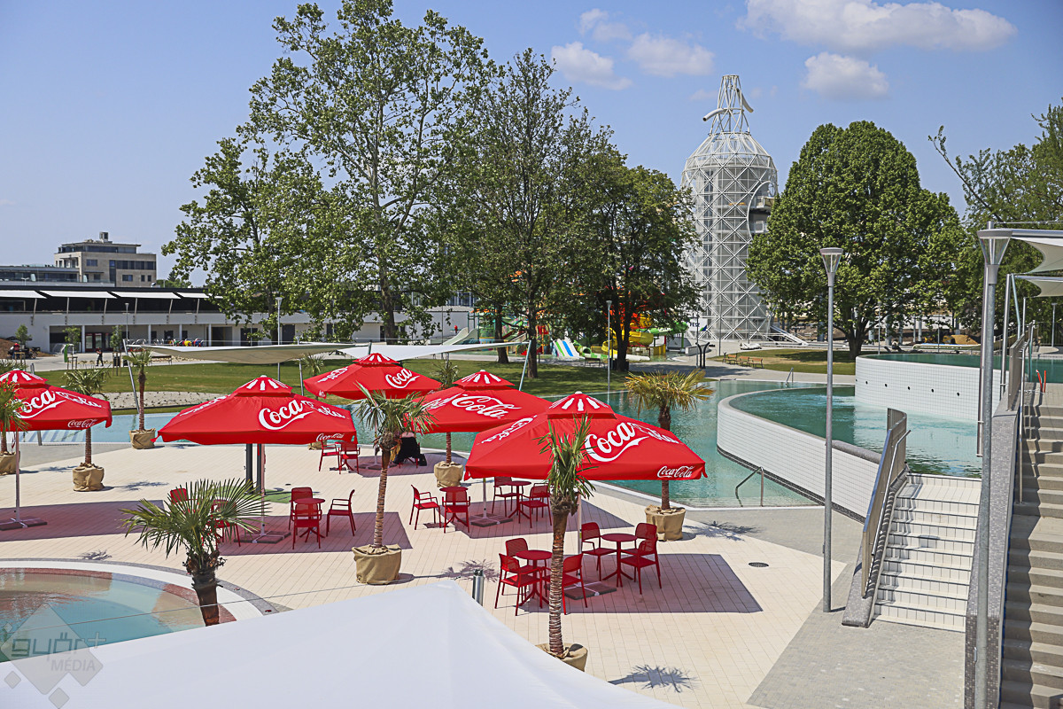 Az árvízvédelmi töltés másik oldalán kialakított három panoráma-medencében egyszerre 500-an fürdőzhetnek. A szódásszifon alakú csúszdatorony üvegfalú panorámaliftje igazi kuriózum, a torony esténként díszkivilágítást kap, leghosszabb csúszdája közel 200 méteres. Az élményparkban összesen 11 vendéglátóhely gondoskodik a látogatók kiszolgálásáról – hangzott el a próbanapon.