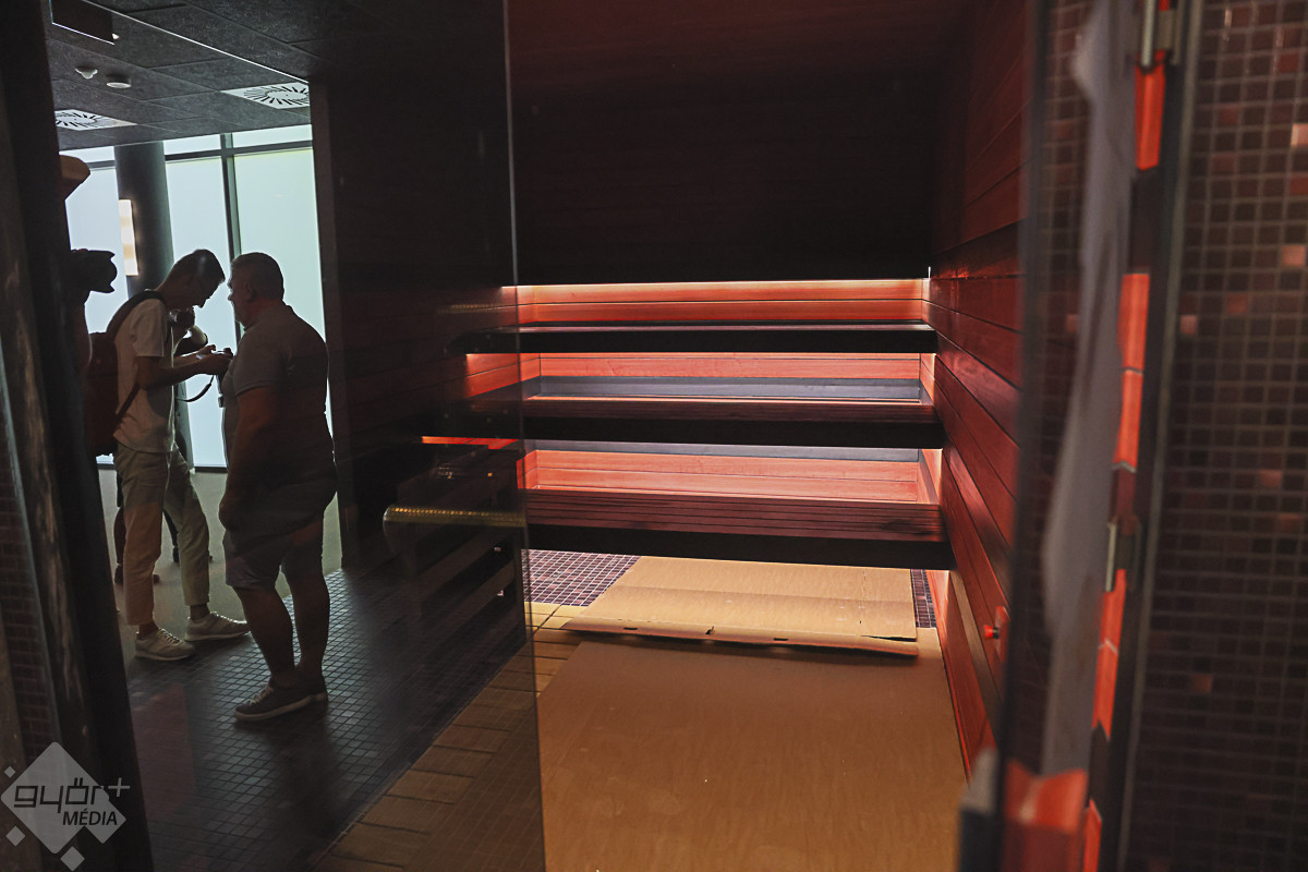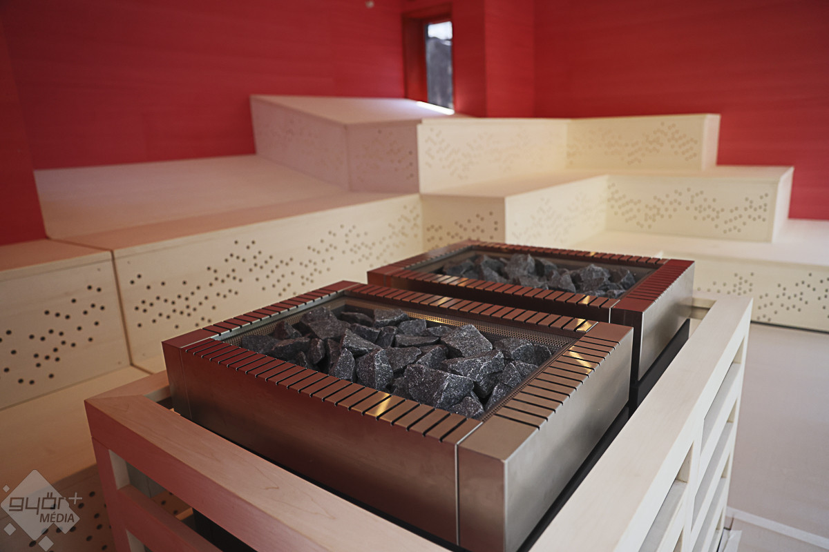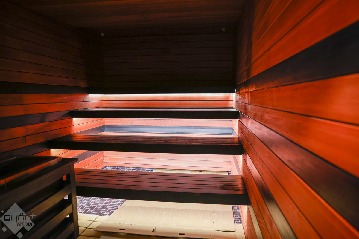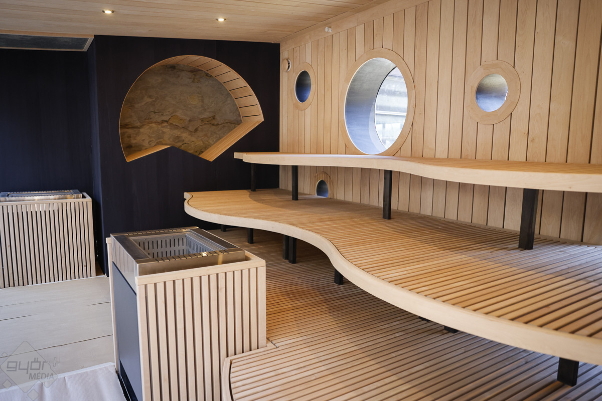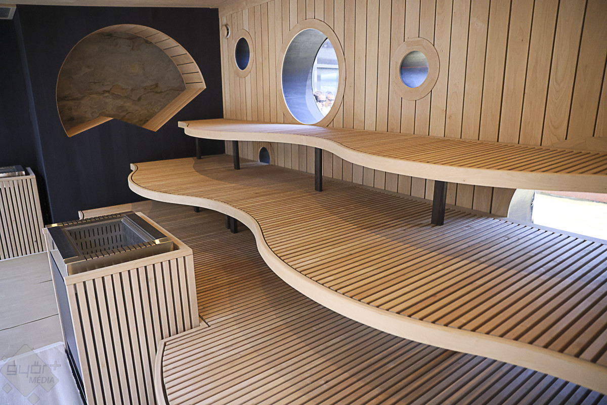 A vezetett séta a 150 fő befogadására alkalmas, egyedi hangulatú japán szaunakertben kezdődött. A pergolákkal és hangulatos, bambusznádas pihenőkkel tarkított szaunakert az ország egyik legnagyobb ilyen részlege, saját pihenőtérrel, gyógyvizes medencével, a hátsó traktusában pedig a Püspökvárra néző üvegfalú panoráma-szaunával.
