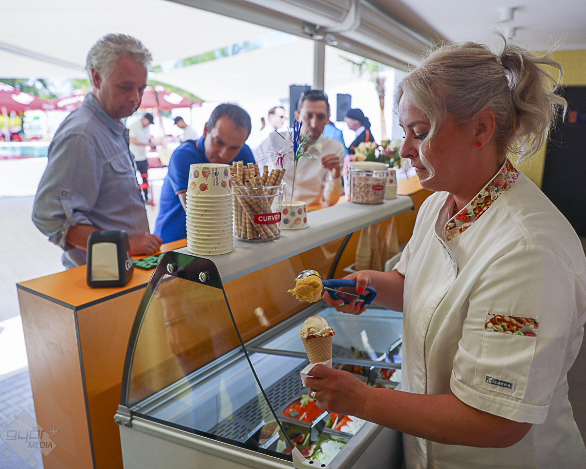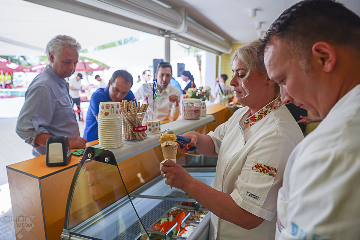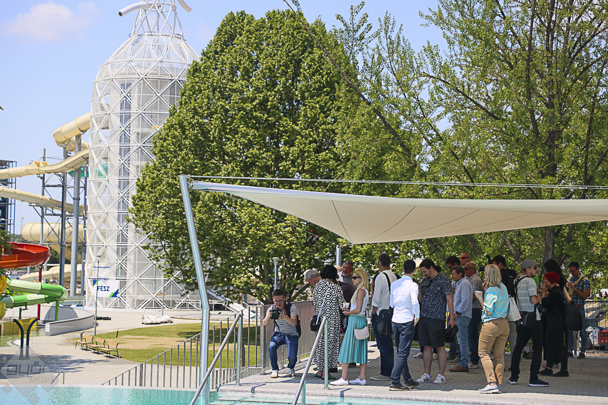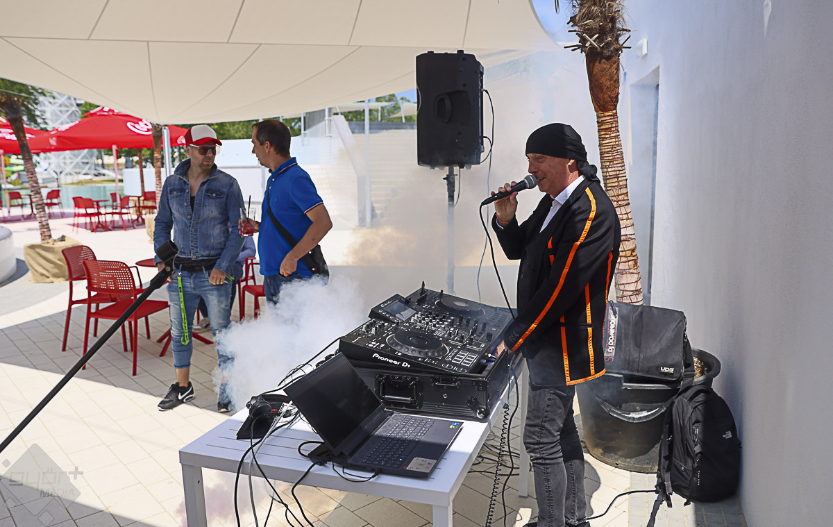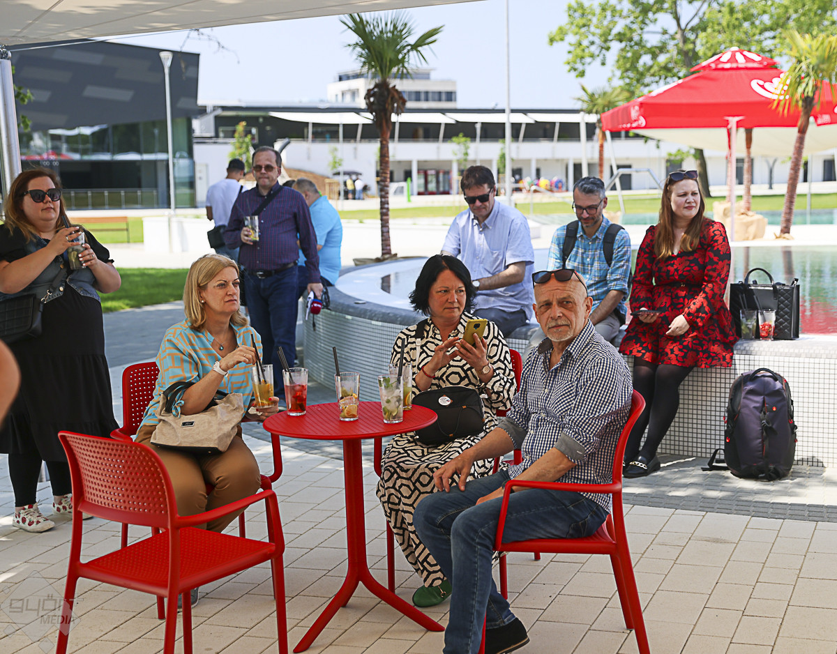 A körséta résztvevőit ezután kellemes meglepetés várta. A szabadtéri bárban behűtött, alkoholmentes koktélokkal, valamint DJ Dominique zenéivel kedveskedtek a házigazdák. Várkonyi Attila, azaz DJ Dominique elmondta, az élményfürdőnek saját rádiója is lesz.