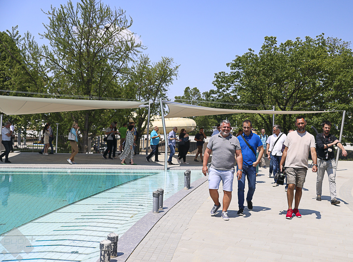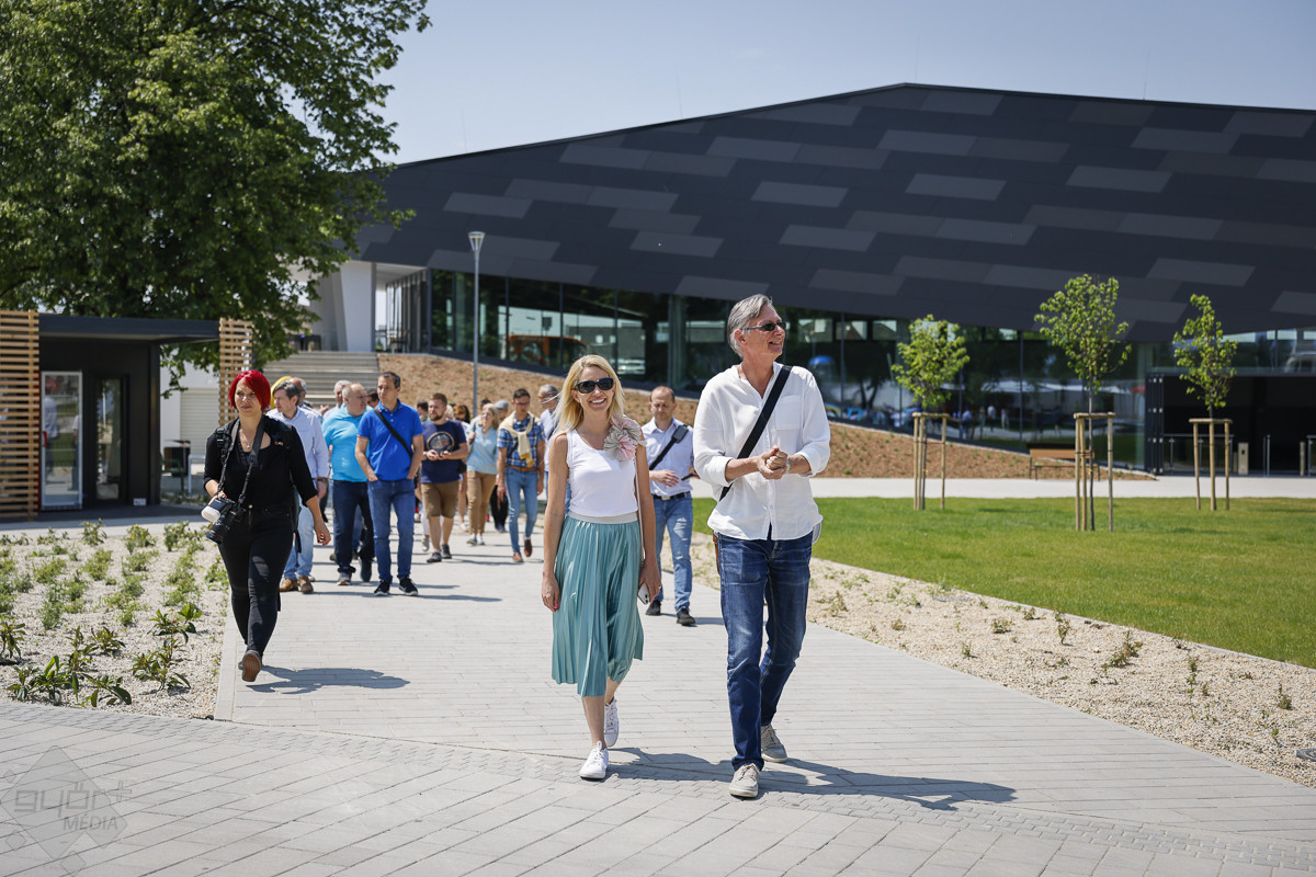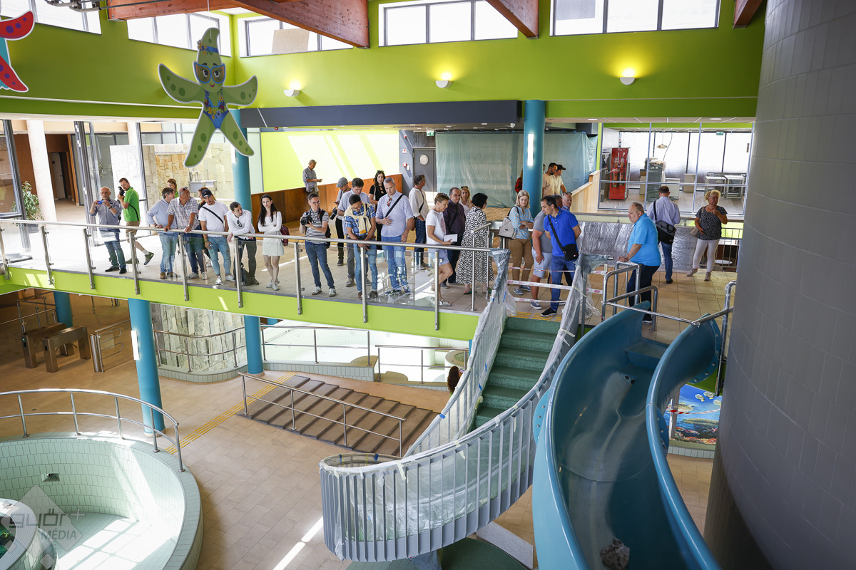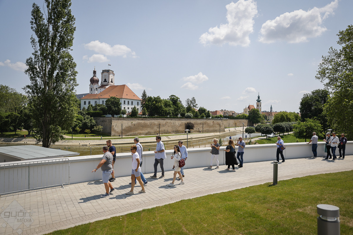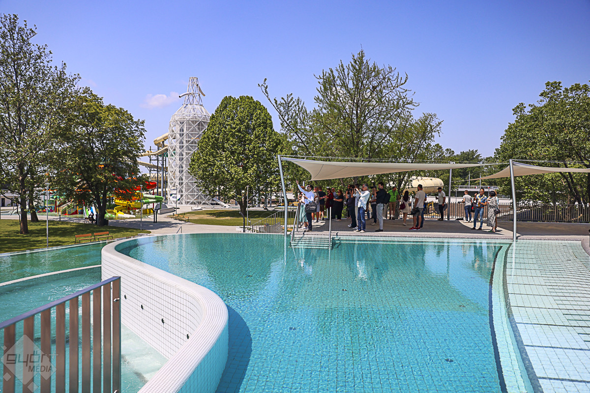 Ezt követően Kovacsics Imre kalauzolta végig az egyes helyszíneken a vendégeket. Hangsúlyozta: az élményfürdő előtt kialakított új közpark, a vadonatúj közforgalmú parkolólemez, valamint a város árvízvédelmét is szolgáló új védmű megépülésével gyakorlatilag egy új városrész épült fel a területen, amely valamennyi győri lakos számára komoly előnyökkel jár.