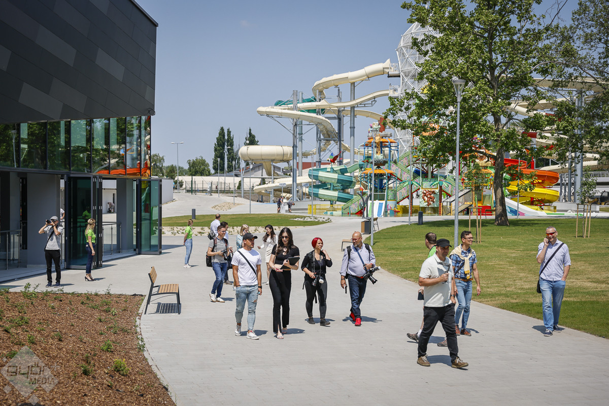 Az élménypark tágas fogadó aulájában Virág-Adorján Andrea polgármesteri főbiztos és Kovacsics Imre vezérigazgató köszöntötte a megjelenteket. Virág-Adorján Andrea elmondta, ahhoz hogy megismerhessük ezt a csodálatos létesítményt, el kell jönni ide, és személyesen kell meggyőződni arról, milyen fantasztikus munkát végeztek a szakemberek. Egyúttal bejelentette: döntés született róla, hogy a régi Hajós-épület és a Cziráky-obeliszk felvételét javasolni fogják a Győri Értéktárba.