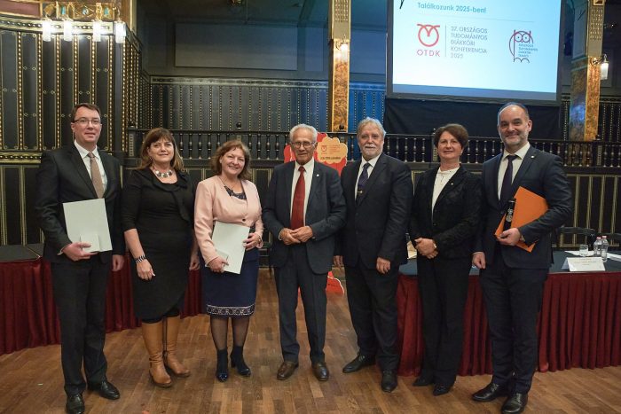 A győri Széchenyi István Egyetem három docense, dr. Lanczendorfer Zsuzsanna, dr. Erdős Csaba és dr. Szabó Zsolt Roland vehetett át tehetségsegítő munkájáért Mestertanár Aranyérmet az Országos Tudományos Diákköri Tanács (OTDT) Zeneakadémián megtartott ünnepségén.