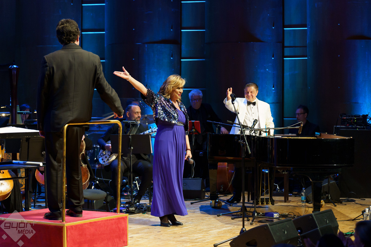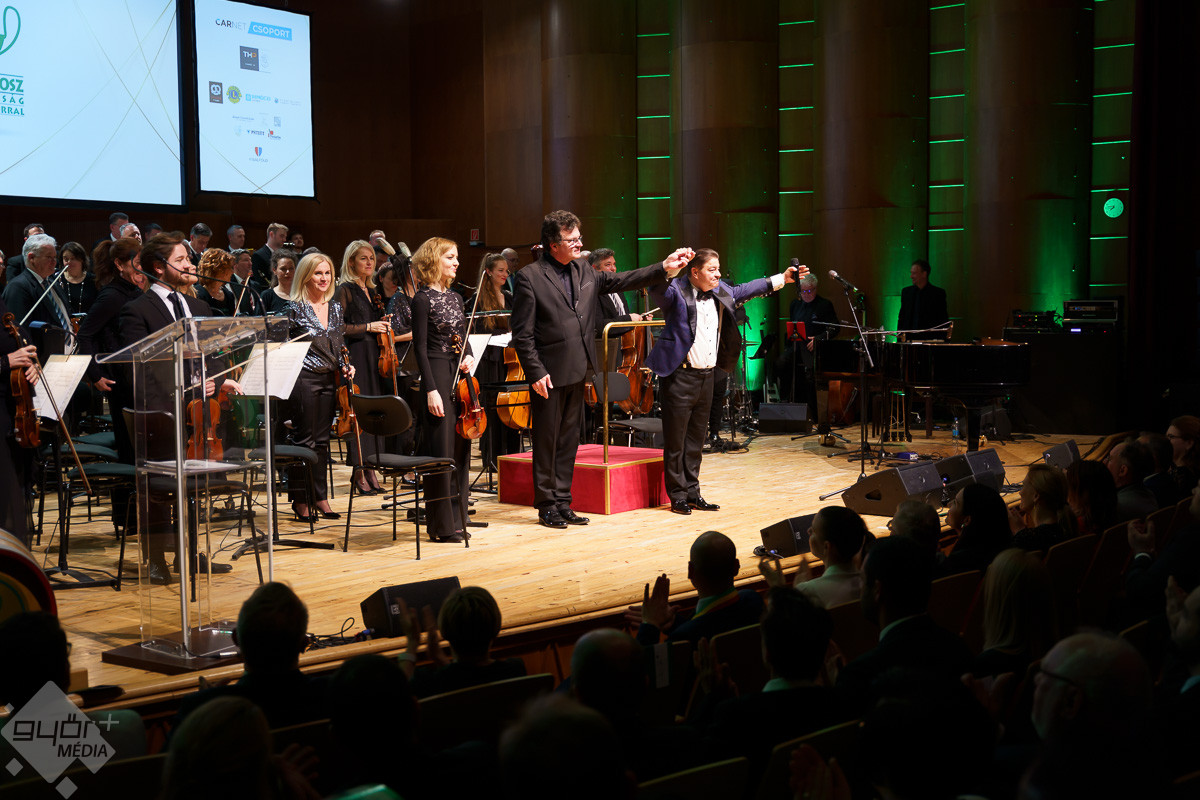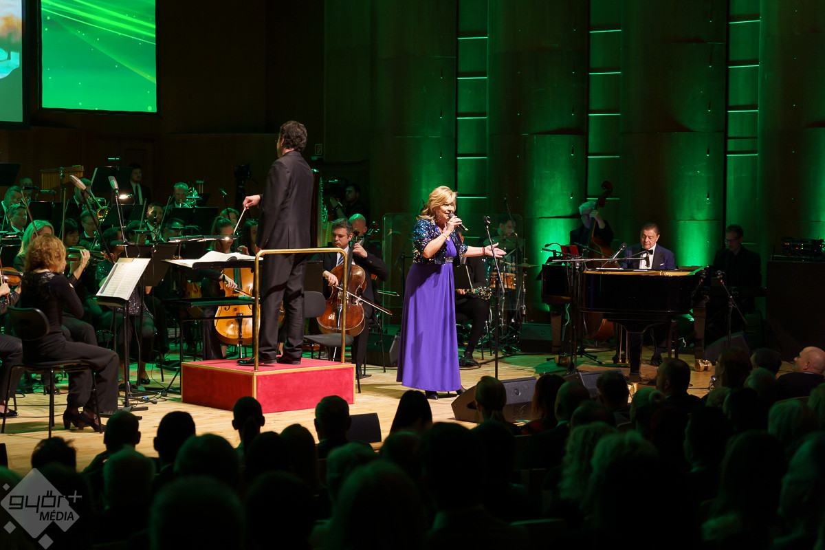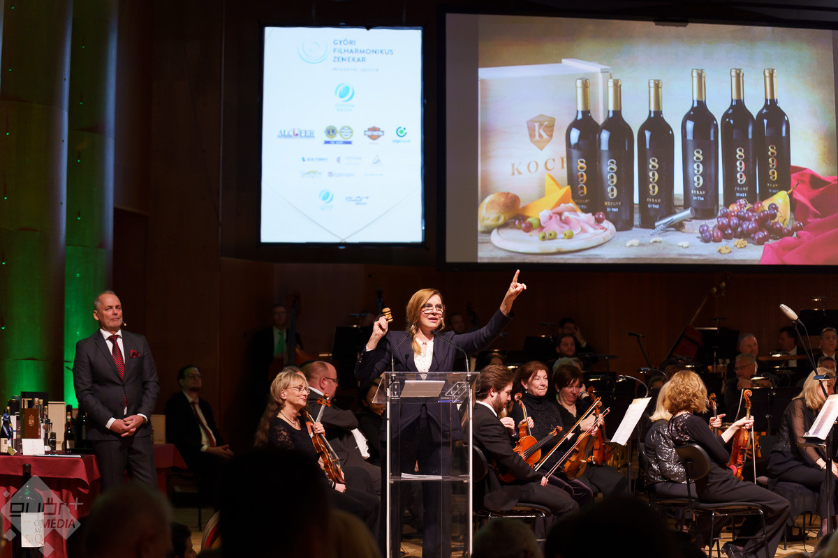 A gálán a nem mindennapi zenei élményről két kiváló előadóművész, Szulák Andrea, valamint a jazz-zongorista, énekes Nyári Károly, és természetesen a Győri Filharmonikus Zenekar Silló István karmester vezényletével gondoskodott. A borászatok által felajánlott italok Borbás Marcsi kezéből kerültek kalapács alá, műsorvezetőtársa Fábián György volt.