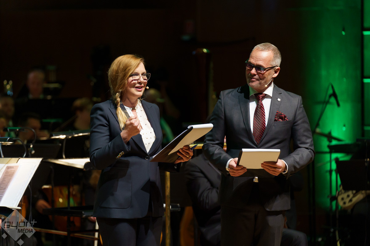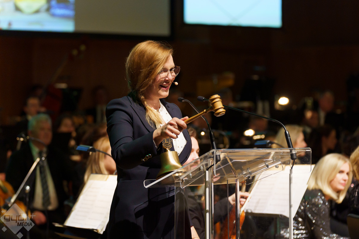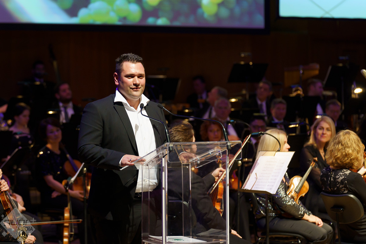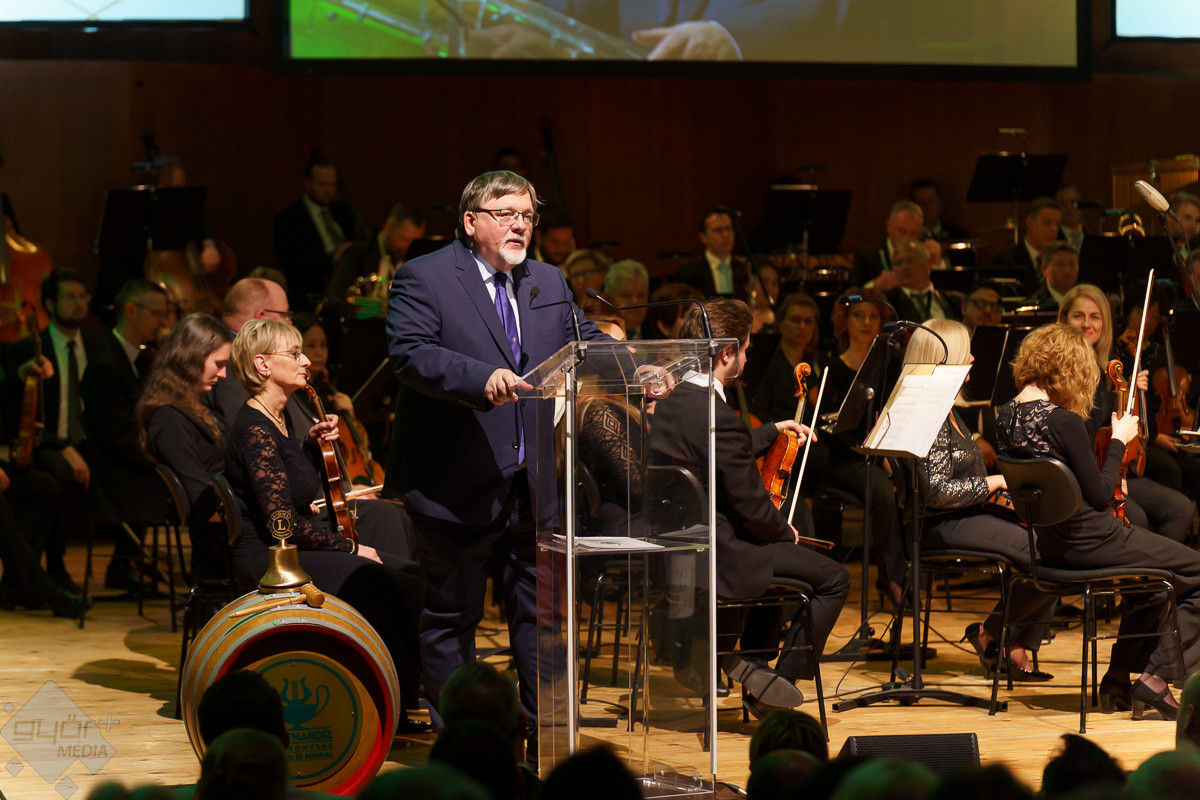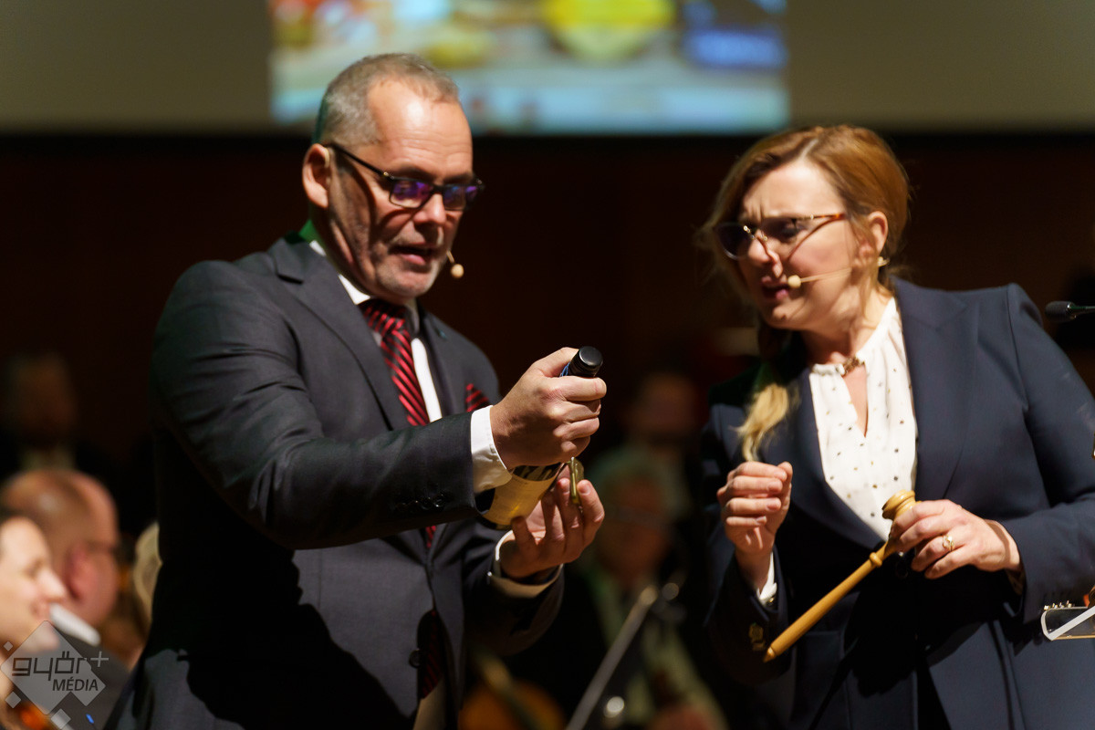 A gálán a nem mindennapi zenei élményről két kiváló előadóművész, Szulák Andrea, valamint a jazz-zongorista, énekes Nyári Károly, és természetesen a Győri Filharmonikus Zenekar Silló István karmester vezényletével gondoskodott. A borászatok által felajánlott italok Borbás Marcsi kezéből kerültek kalapács alá, műsorvezetőtársa Fábián György volt.
