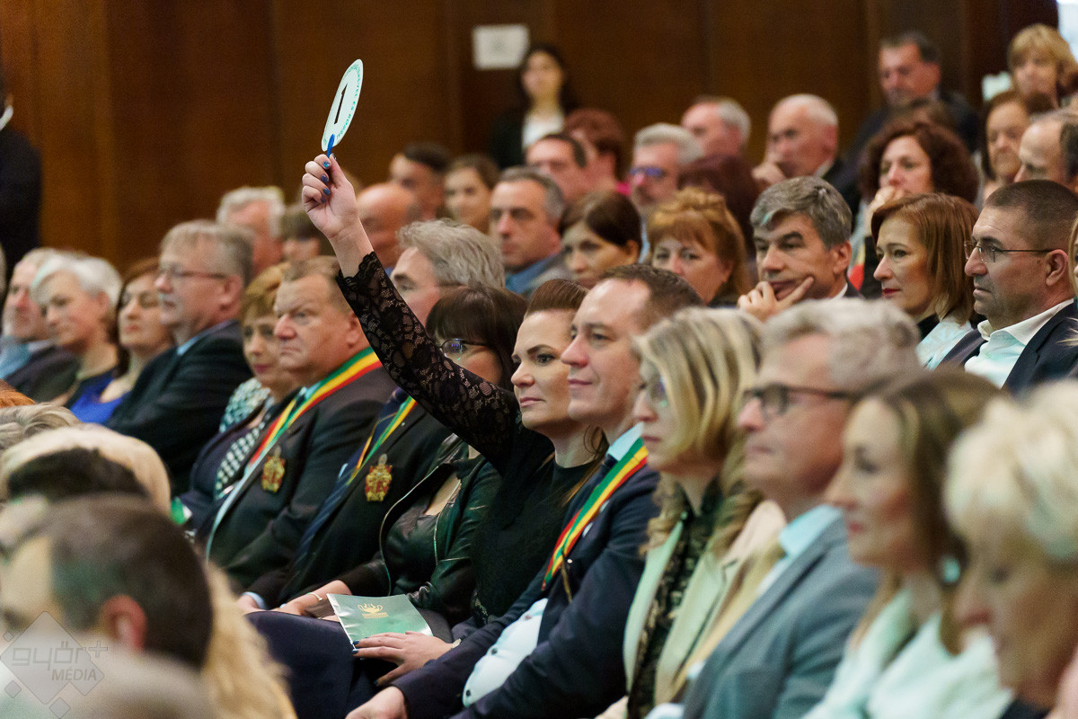 Dr. Dézsi Csaba András polgármester is köszöntötte a résztvevőket. Arról beszélt, hogy Győrben több száz éves hagyománya van az adakozásnak. Elég ha csak arra gondolunk, hogy a Városháza Bisinger József hagyatékából épült, aki a halála előtti napon végrendelkezett úgy, hogy a városra hagyja teljes vagyonát. Ugyancsak adományokból jött létre a polgármester által alapított korszerű Szívcentrum is, ahol már harmincezernél több ember életét mentették meg.