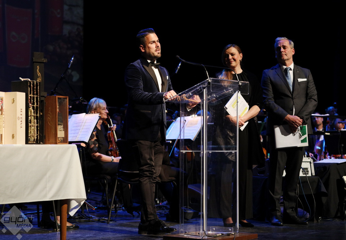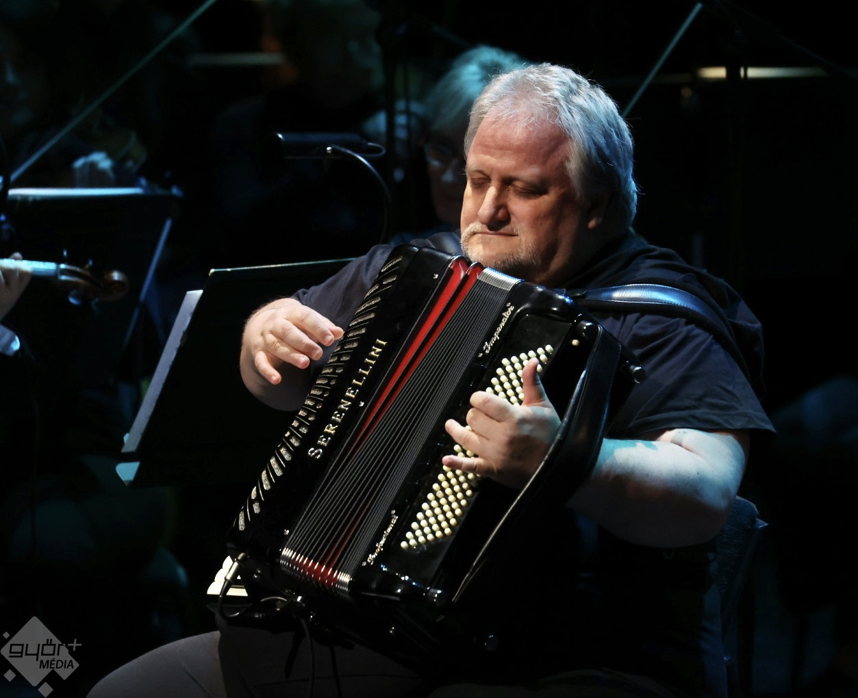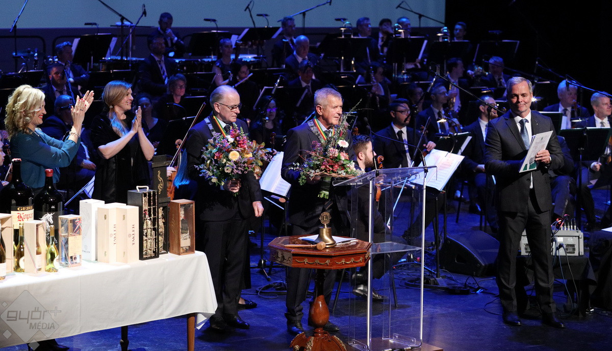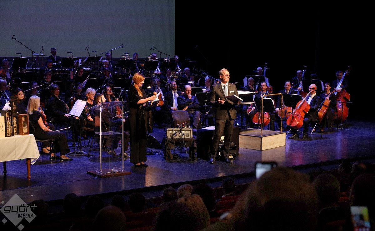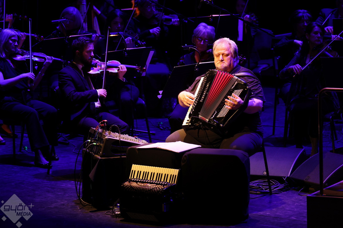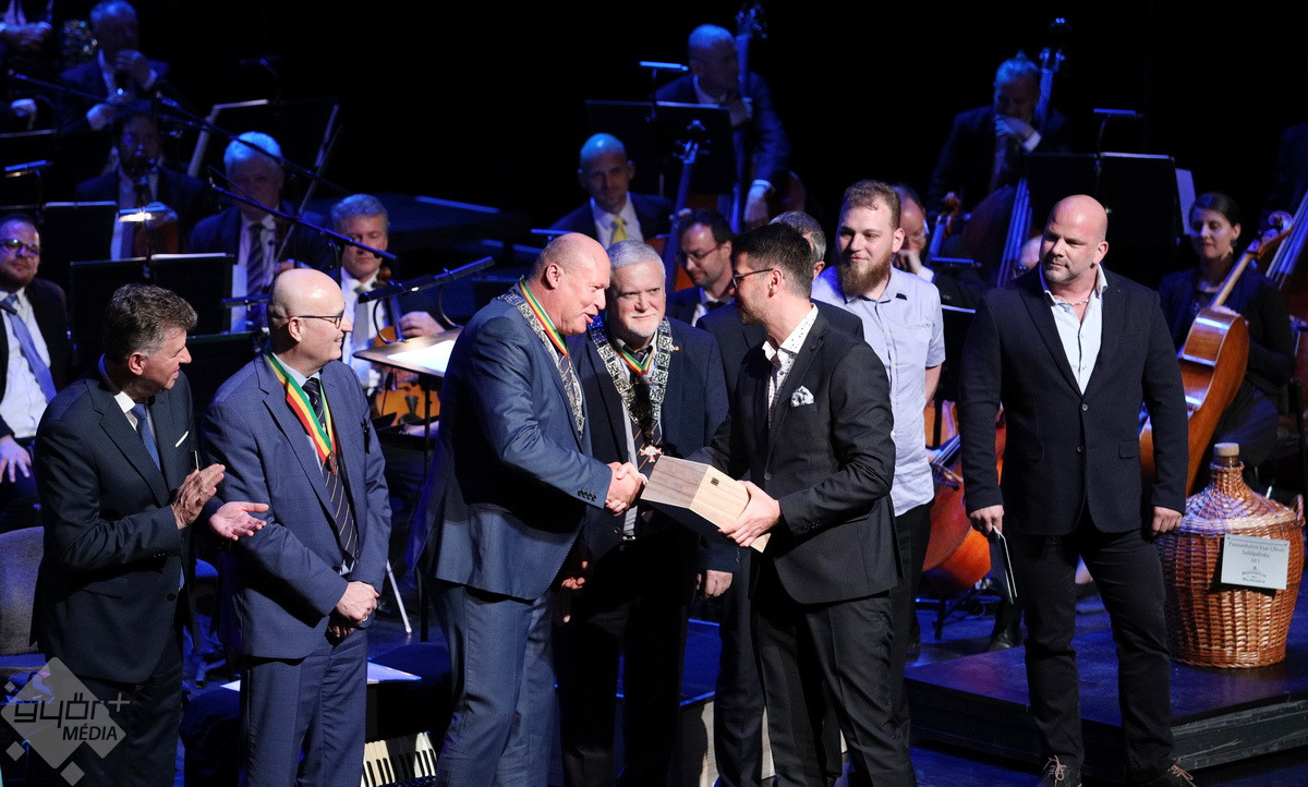 Az est a Győri Filharmonikus Zenekar és Orosz Zoltán játékával indult. A Rácz Márton dirigálta együttes francia sanzonokkal, szláv melódiákkal, Bizet-darabbal repítette a közönséget olyan magaslatokba, ahonnan nagyon nehéz volt visszatérni az eredeti célhoz, a jótékonysági árveréshez. Már az évadtervezéskor tudták, hogy a világhírű harmonikaművésszel, Orosz Zoltánnal fognak a többkoncertes turnén kívül a Kantharoszra is műsort adni – mesélte Fűke Géza, az együttes igazgatója az előzményekről. Erre az alkalomra külön zenei átirattal is készültek, amit a hallgatóság vastapssal hálált meg. A zenekar részéről óriási támogatás, hogy ezen az estén térítésmentesen lépnek fel.