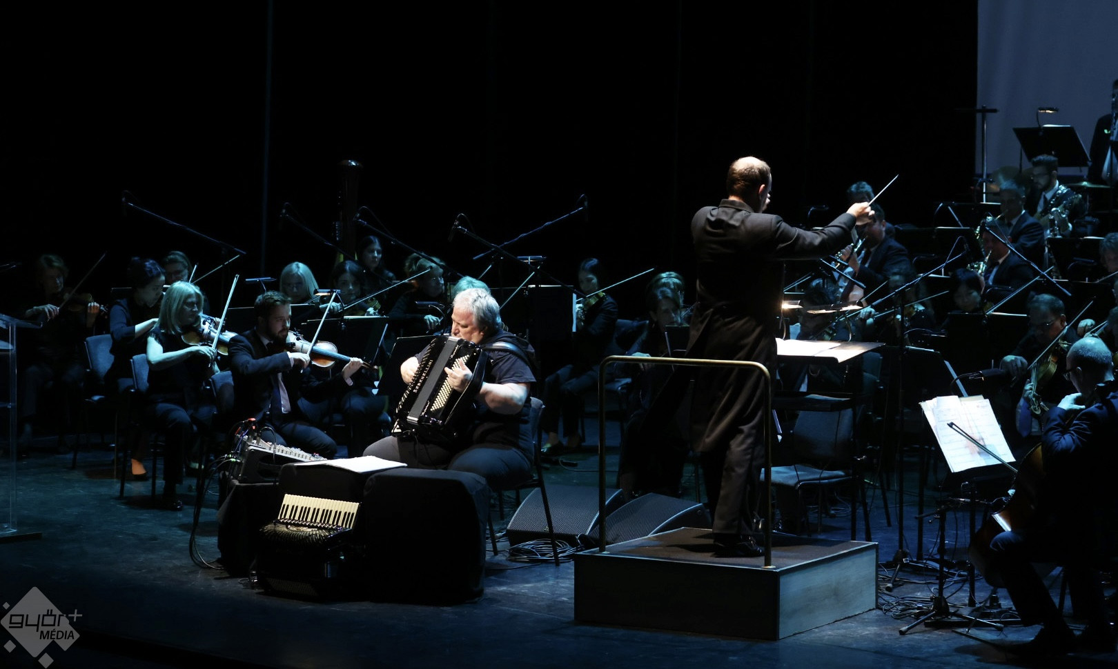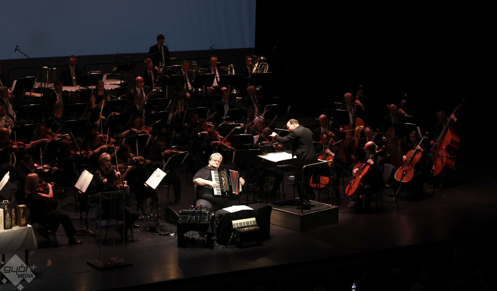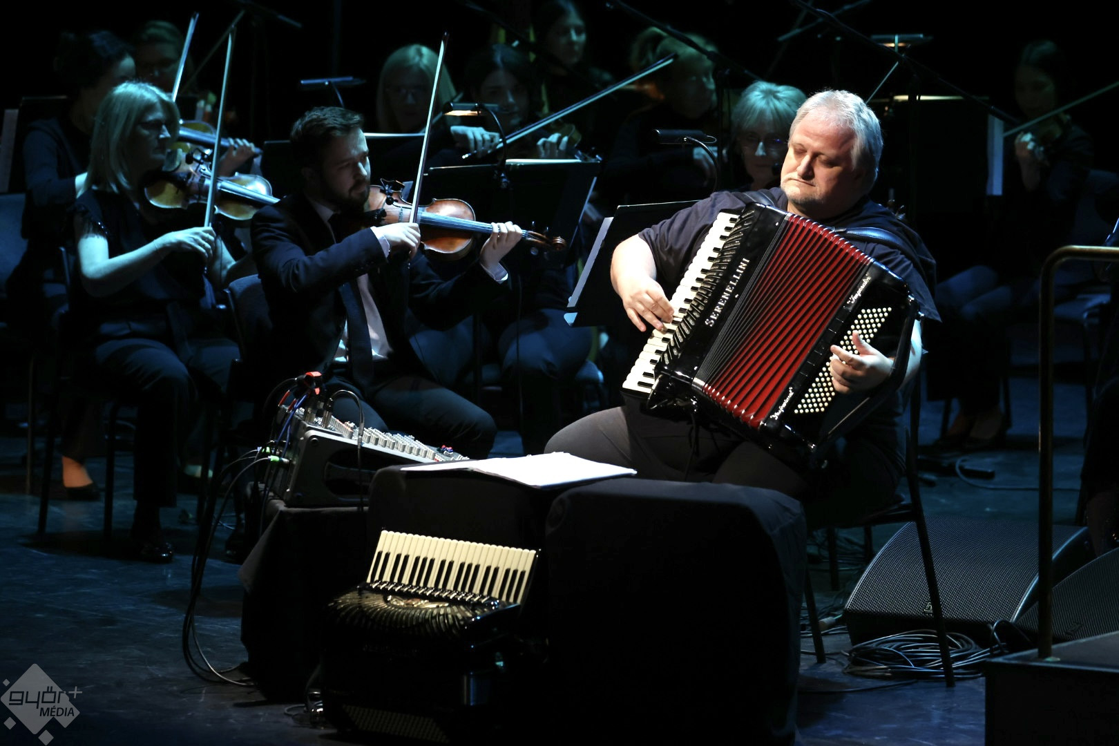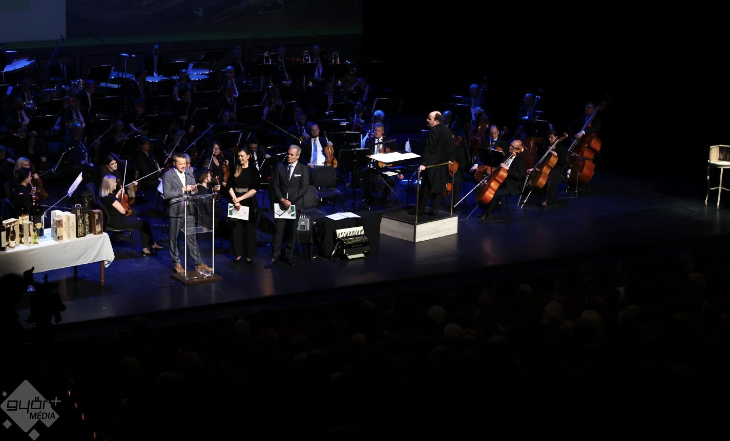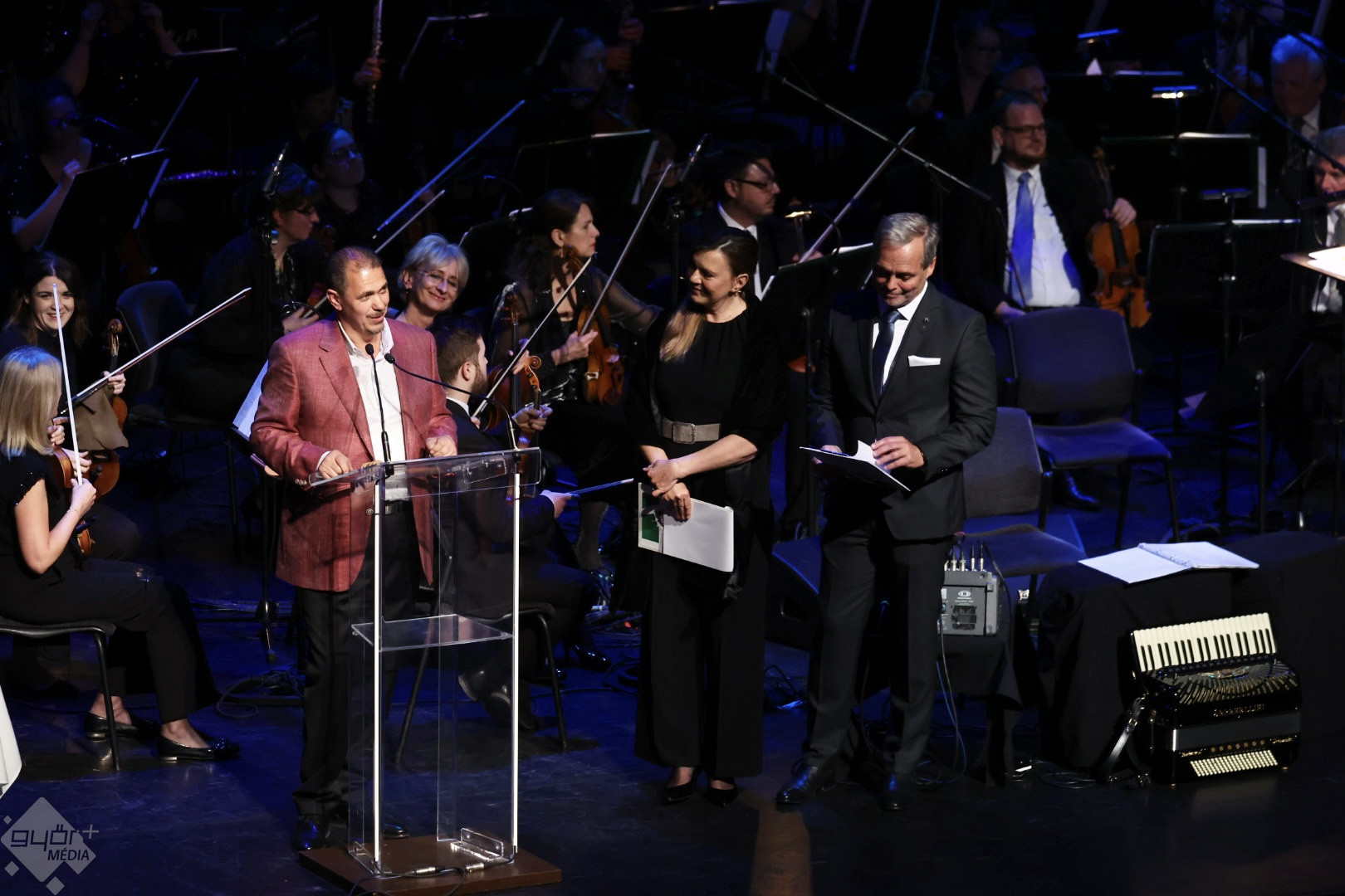 Az est a Győri Filharmonikus Zenekar és Orosz Zoltán játékával indult. A Rácz Márton dirigálta együttes francia sanzonokkal, szláv melódiákkal, Bizet-darabbal repítette a közönséget olyan magaslatokba, ahonnan nagyon nehéz volt visszatérni az eredeti célhoz, a jótékonysági árveréshez. Már az évadtervezéskor tudták, hogy a világhírű harmonikaművésszel, Orosz Zoltánnal fognak a többkoncertes turnén kívül a Kantharoszra is műsort adni – mesélte Fűke Géza, az együttes igazgatója az előzményekről. Erre az alkalomra külön zenei átirattal is készültek, amit a hallgatóság vastapssal hálált meg. A zenekar részéről óriási támogatás, hogy ezen az estén térítésmentesen lépnek fel.