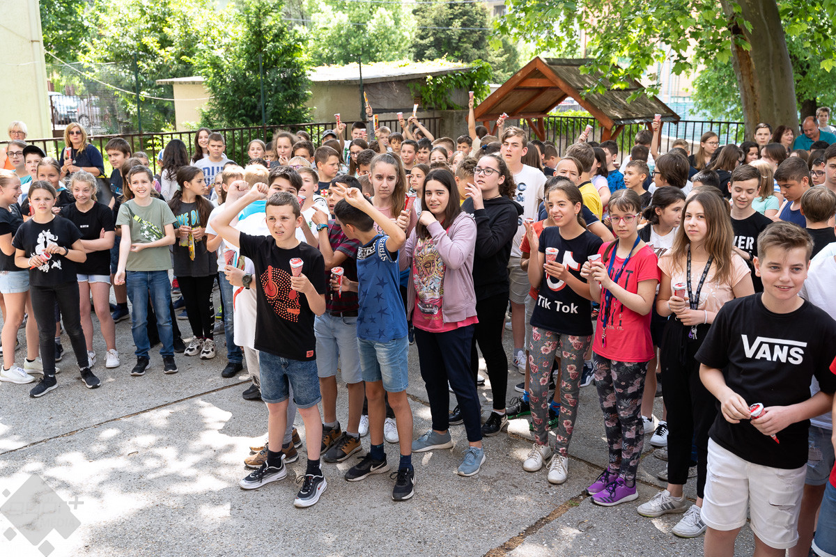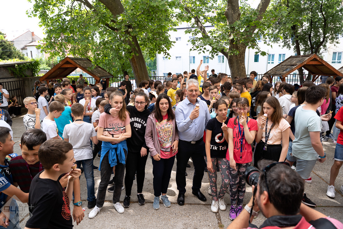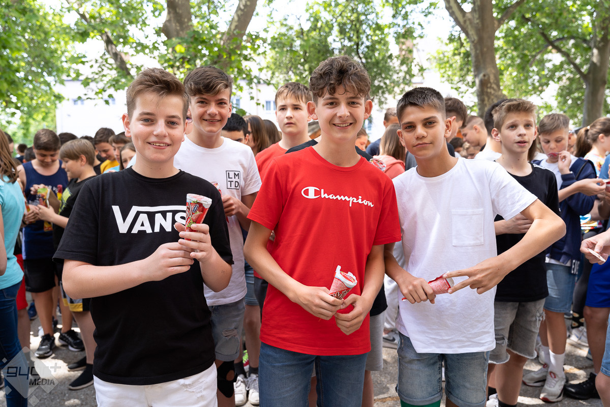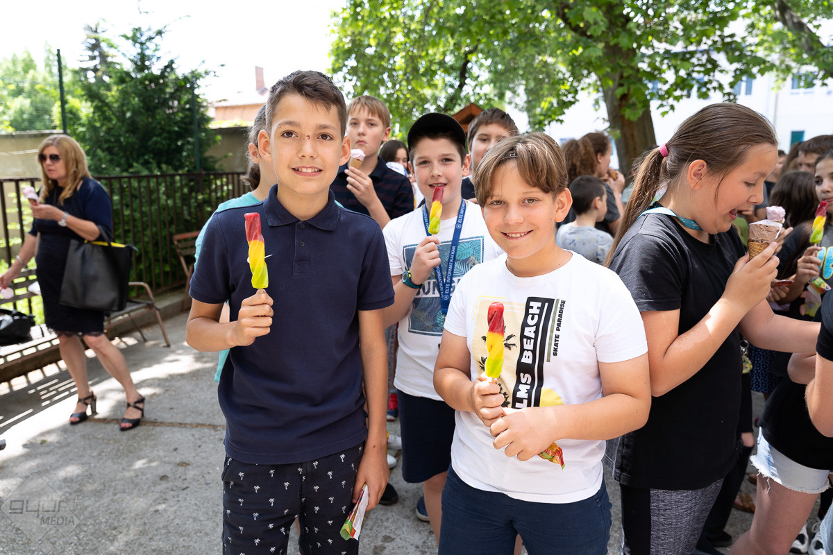 A gyermekek először a magasba emelték a fagyikat, majd megkezdődött a közös jégkrémezés, amelyet nagyon élveztek a diákok.