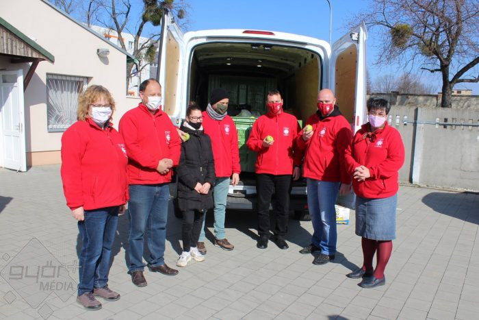 Március 18-án Csornáról keresett fel minket Családi János, a Hanság-Fertőmenti Szövetkezet elnöke, hogy tavalyi, nagy mennyiségű almalé-adománya után ezúttal csaknem 7200 kg étkezési almát ajánljon fel szervezetünknek. A Katolikus Karitász jóvoltából további 450 db fagyasztott kacsacombot, illetve 150 db felezett trappista sajtot kaptunk, és megszerveztük, hogy a rendelkezésre bocsátott, hűtőházból származó adományok a szomszédos egyházmegyei karitász-szervezetek és társintézményeink bevonásával egy héten belül eljussanak a rászorulókhoz. A családoknak szánt segélycsomagot ezen kívül a március 12-13. között a győri ALDI élelmiszerüzletben általunk gyűjtött tartósélelmiszer-dobozokkal egészítettük ki. A járványügyi előírások betartásával személyesen adtuk át a rendkívüli egységcsomagokat, melyben nagy segítséget nyújtott számunkra a győri Brenner János Hittudományi Főiskola.