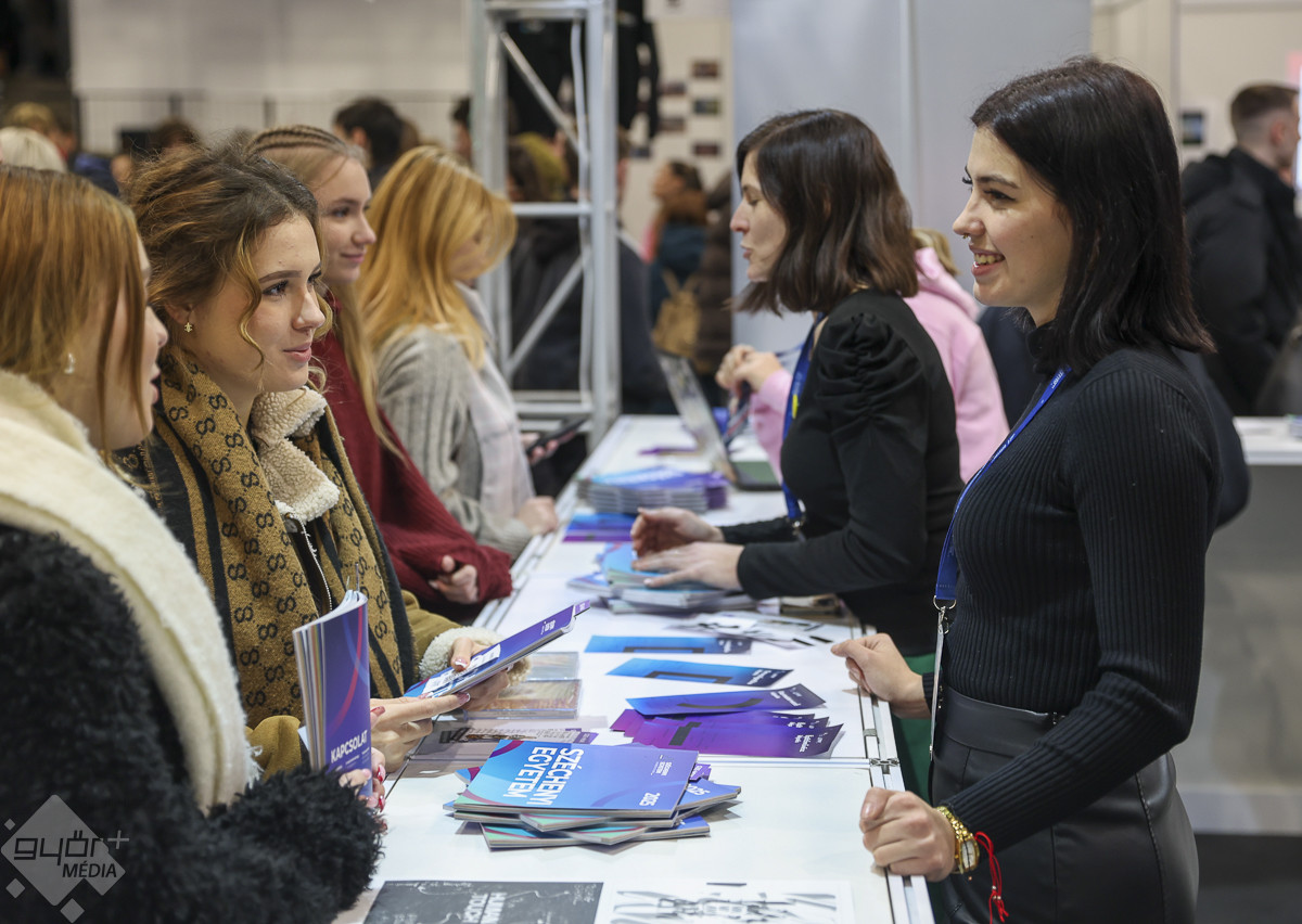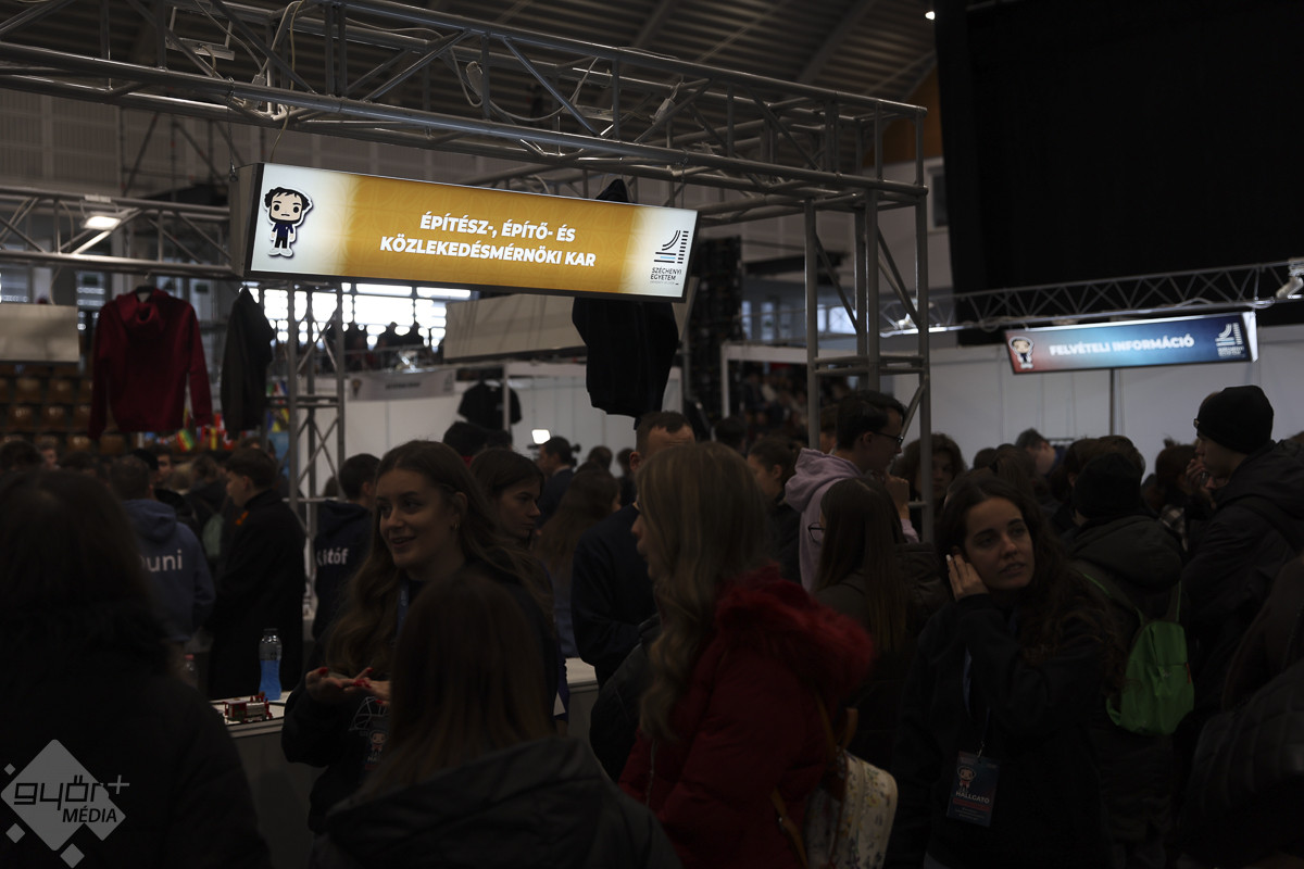 Nyitott kapukkal és rengeteg programmal várta a felsőoktatás iránt érdeklődő fiatalokat a Széchenyi Egyetem kedden délelőtt. A pályaválasztás előtt álló diákok az Egyetemi csarnokban berendezett kiállítótérben kezdhették az ismerkedést a szakokkal, majd innét indulhattak felfedezni a campust. Megnézhették az előadótermeket, a kollégiumot és a laboratóriumokat.