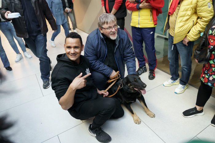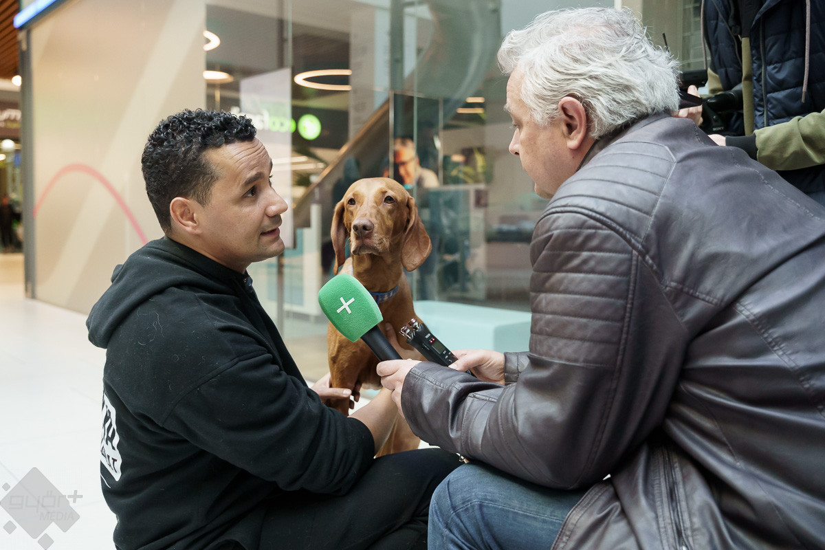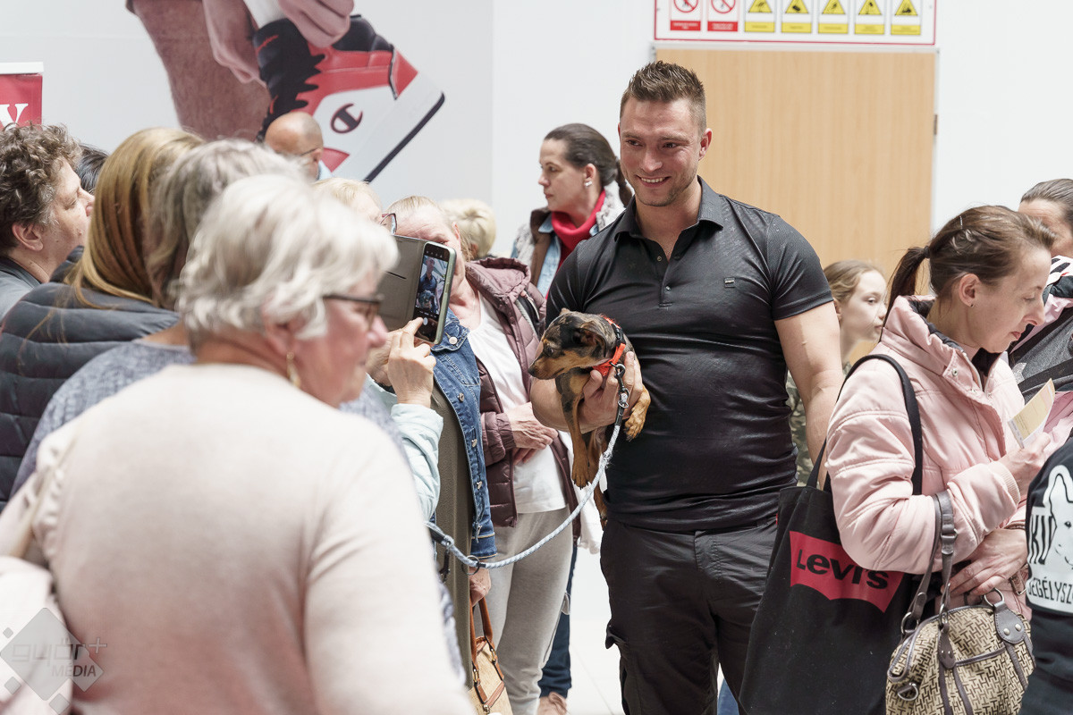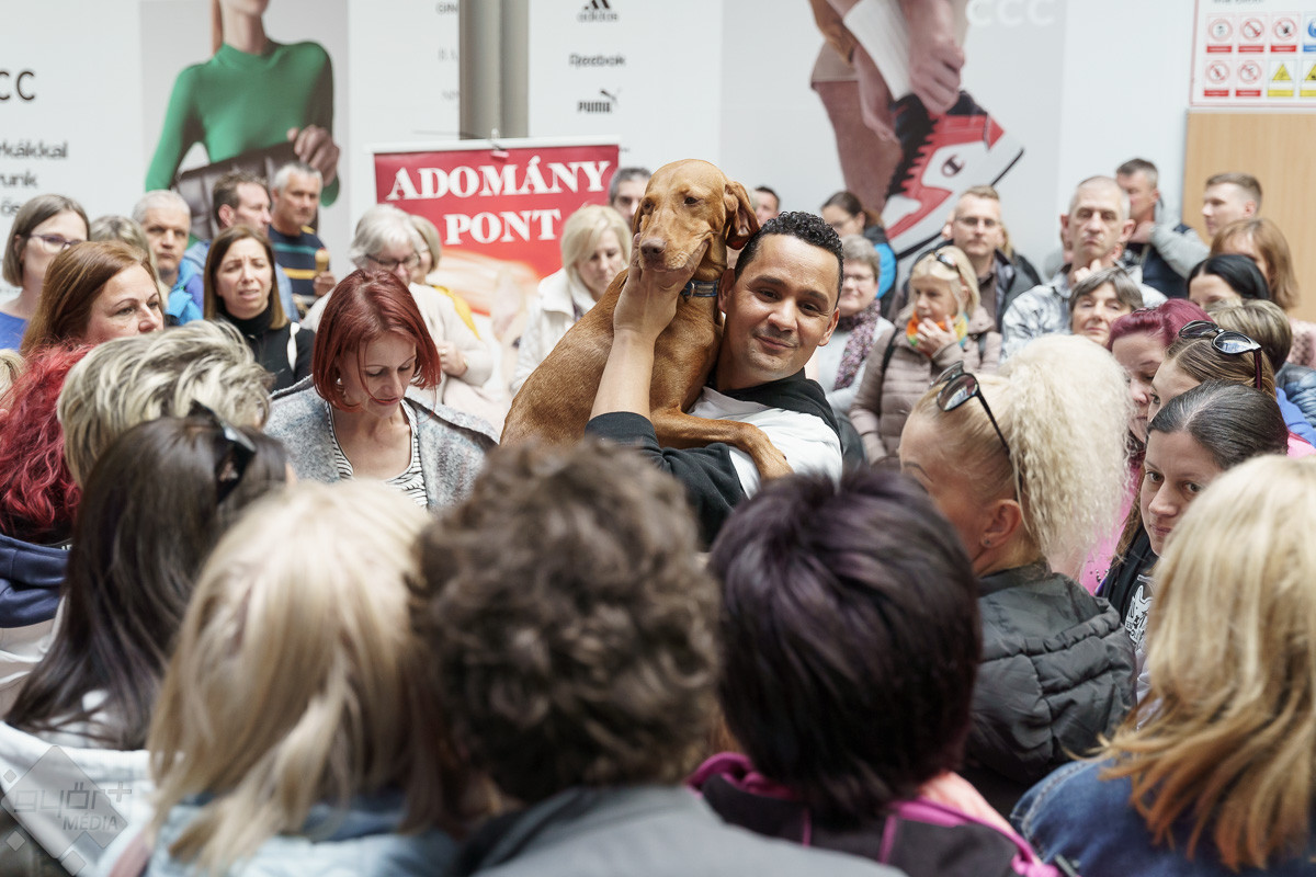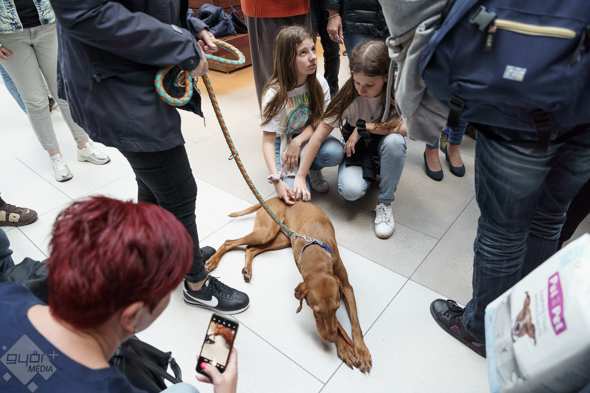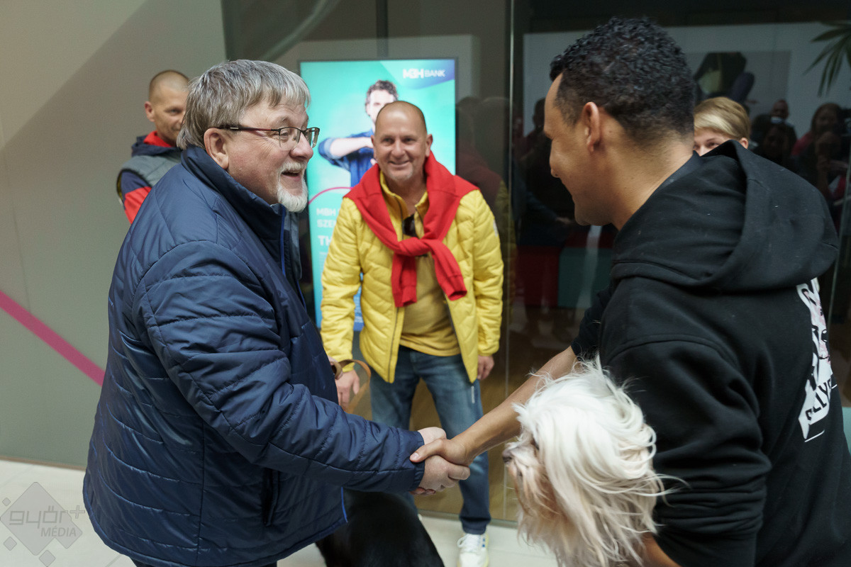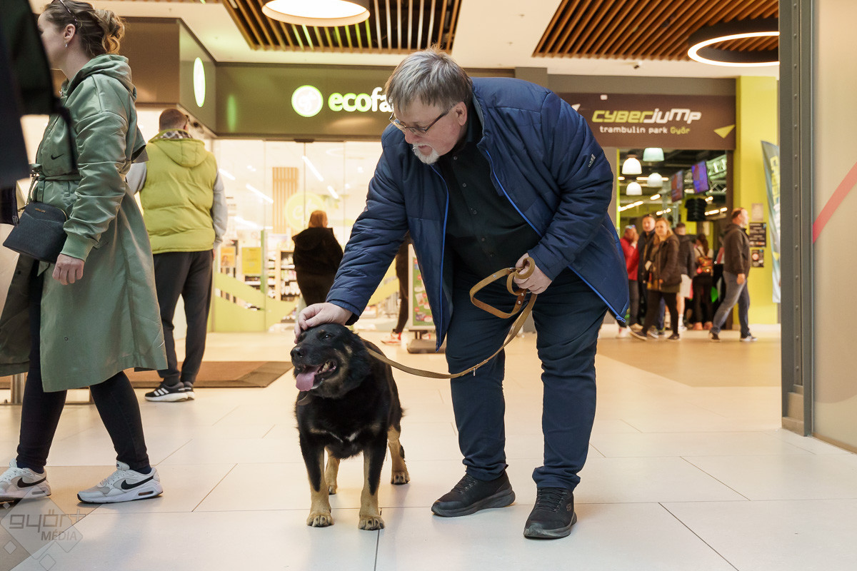 A közönségtalálkozó-adománygyűjtésre Dr. Dézsi Csaba András, Győr polgármestere is ellátogatott, amelyre az örökbefogadott Hobo kutyát is elvitte.