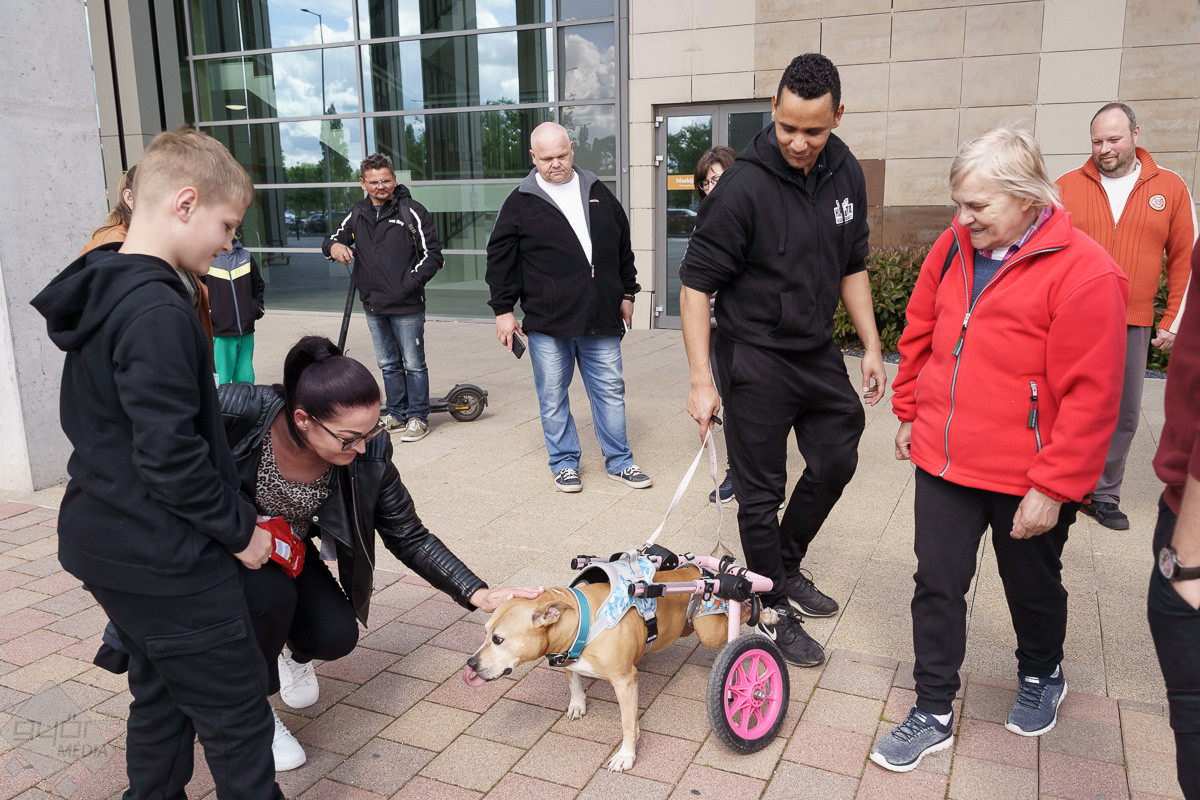 Érkezését már Facebookon jelezte Wegera, a kommunikátor így követői nem véletlenül várták sok százan az ETO Parkban. Az állatvédőt lelkesen fogadták a kutyabarátok. A helyszínen minden kérdésre válaszolt, és kötetlenül beszélgetett az érdeklődőkkel.