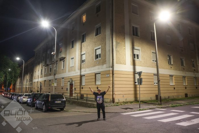 Este tíz után is egészen éber még a győri Álmos utca. Barátnőjét hazakísérő férfival ugyanúgy találkozunk, mint a munkából érkezőkkel, vagy éppen lelkes kutyasétáltatókkal.