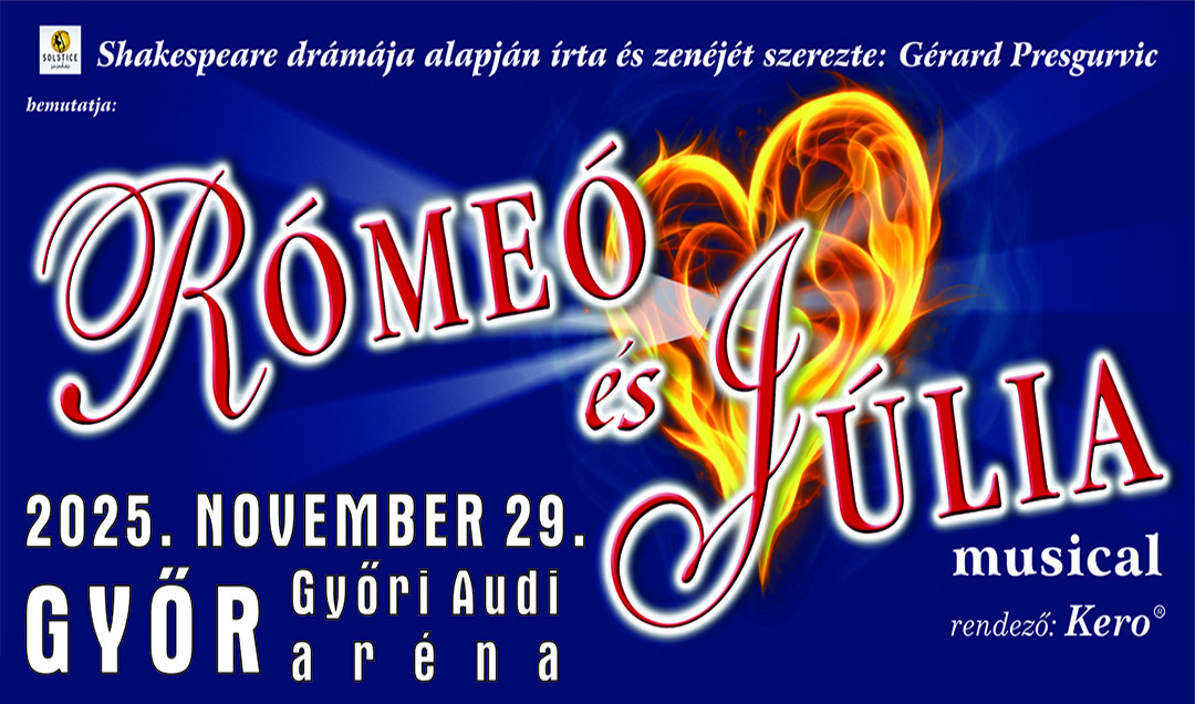 2025 őszének egyik legnagyobb kulturális élménye érkezik Győrbe! A legendás Rómeó és Júlia újra színpadra lép, méghozzá a modern magyar zenés színház egyik legmeghatározóbb alakja, Kero® különleges rendezésében.