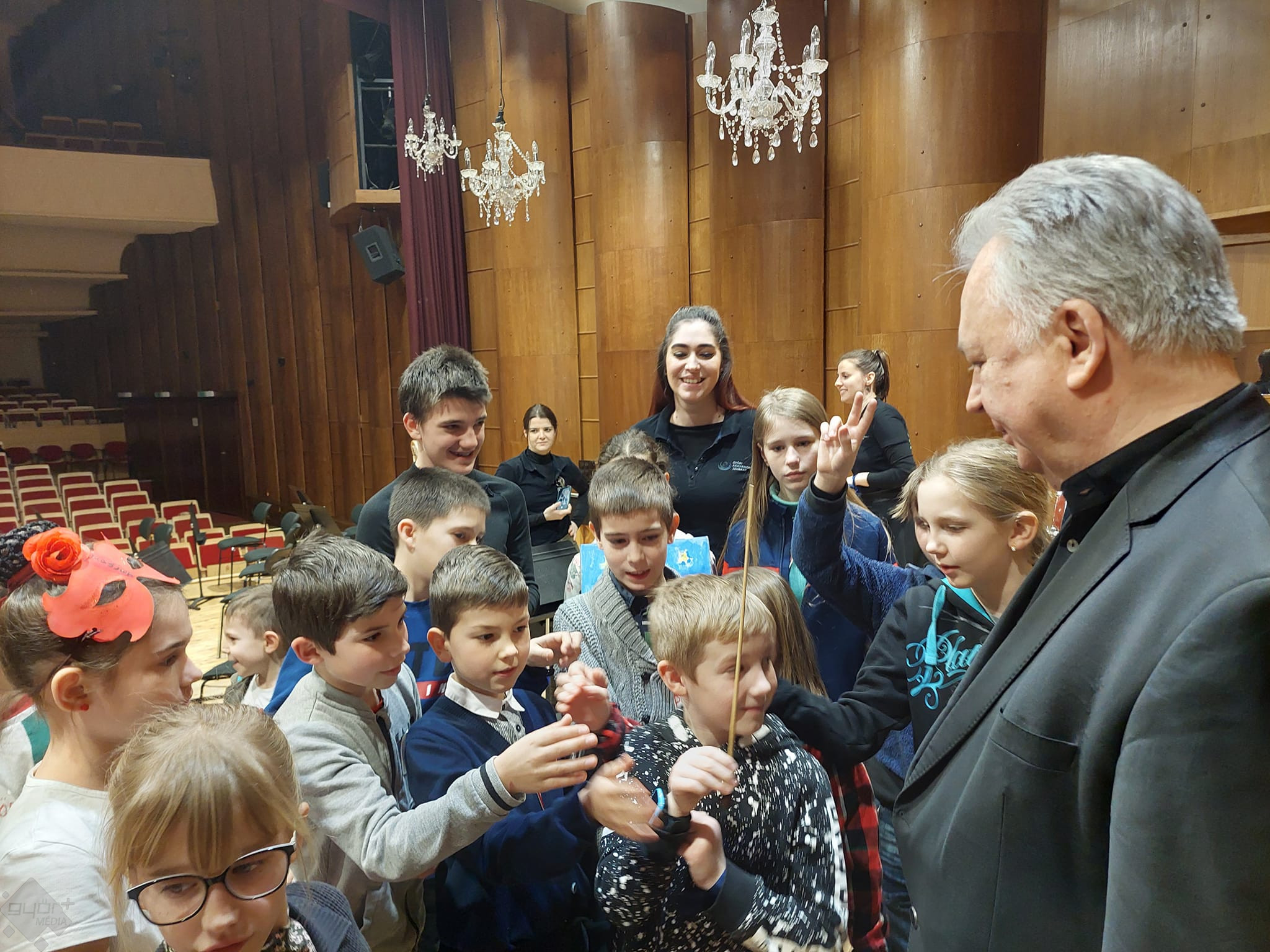 „Imádom a gyerekeket! Örömöt okoz, hogy közöttük lehetek és ha kérdezősködnek arra válaszolhatok a legjobb tudásom szerint.” – mesélte a művész, aki arról is beszélt, hogy igazán eseménydús napokon van túl a Filharmonikus Zenekar.