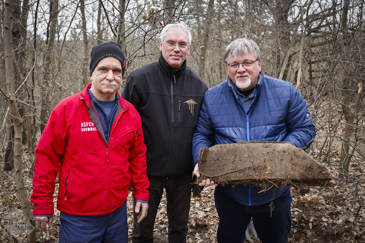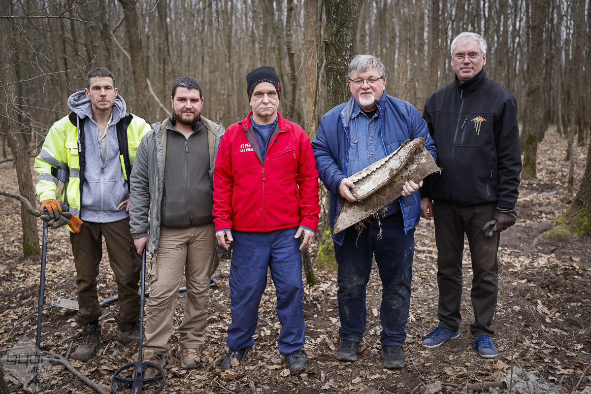 Terepjáróval és hegyet mászva jutottunk el dr. Dézsi Csaba András polgármestert elkísérve az écsi dombtetőre, ahol a Rómer múzeum munkatársai fémdetektorok segítségével keresik egy 80 éve lezuhant bombázógép maradványait.