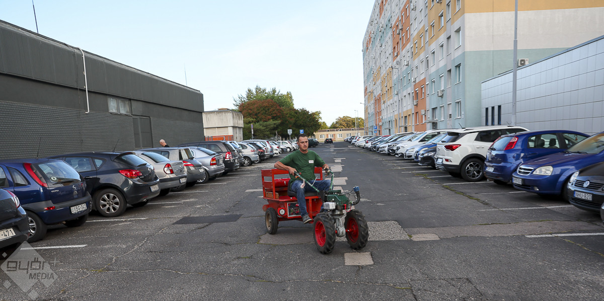 Ismeretlen hang pezsdítette fel szerdán reggel a Kodály Zoltán utca környékét. Valószínűleg ritkán fordul elő városi környezetben rotációs kapa, olyan pedig, mint ami a Győr+Média székház előtt volt látható, talán még sosem járt errefelé.