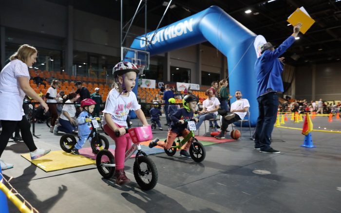 A gyerekek több kategóriában versenyezhettek a futóbiciklis szlalom pályán, amit már a bemelegítésnél is nagyon élveztek. “Ez tulajdonképpen olyan, mint egy rendes bicikliverseny, csak itt a legkisebbeket szólítjuk meg, 2-től 6 éves korig szerepelnek a kicsik. Egy futamon egyszerre hat gyermek indul, egy komoly pályán mennek végig, mi felnőttek teszteltük, egy perc alatt tudtunk végigmenni, a gyerekeknek szerintem fele idő is elég lesz.” – nyilatkozta Bors Balázs, kommunikációs szervező.