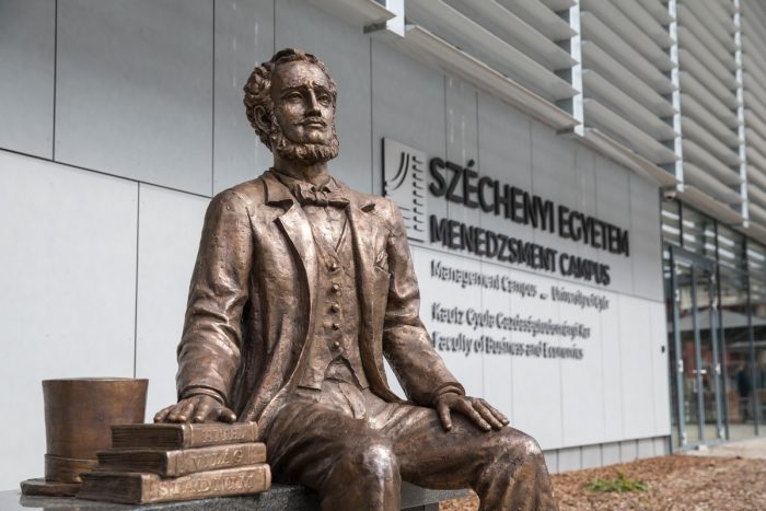 A legnagyobb magyar halálának 160. évfordulója közeleg, ebből az alkalomból kapott szobrot Széchenyi István a fél évszázadra visszatekintő, róla elnevezett intézmény campusán a győri önkormányzat, az Audi Hungaria Zrt., valamint a Győr-Moson-Sopron Megyei Kereskedelmi és Iparkamara közös adományaként.