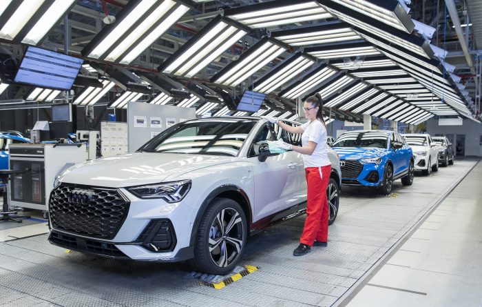 A négykarikás győri vállalatnál 2023-ban összesen 177 775 Audi gépjármű (beleértve az SKD-gyártást) gördült le a gyártósorról, mely rekordteljesítmény a járműgyárban. A legmagasabb darabszámban gyártott modell az Audi Q3 volt, melyből a munkatársak 94 283 darabot készítettek. A Q3 mellett 73 806 darab Q3 Sportback készült Győrben 2023-ban, valamint 6 850 Audi TT Coupé és 2 681 TT Roadster modell. A Q3 és Q3 Sportback modellek közül 24 579 plug-in-hibrid és 5 393 mild hibrid készült 2023-ban.