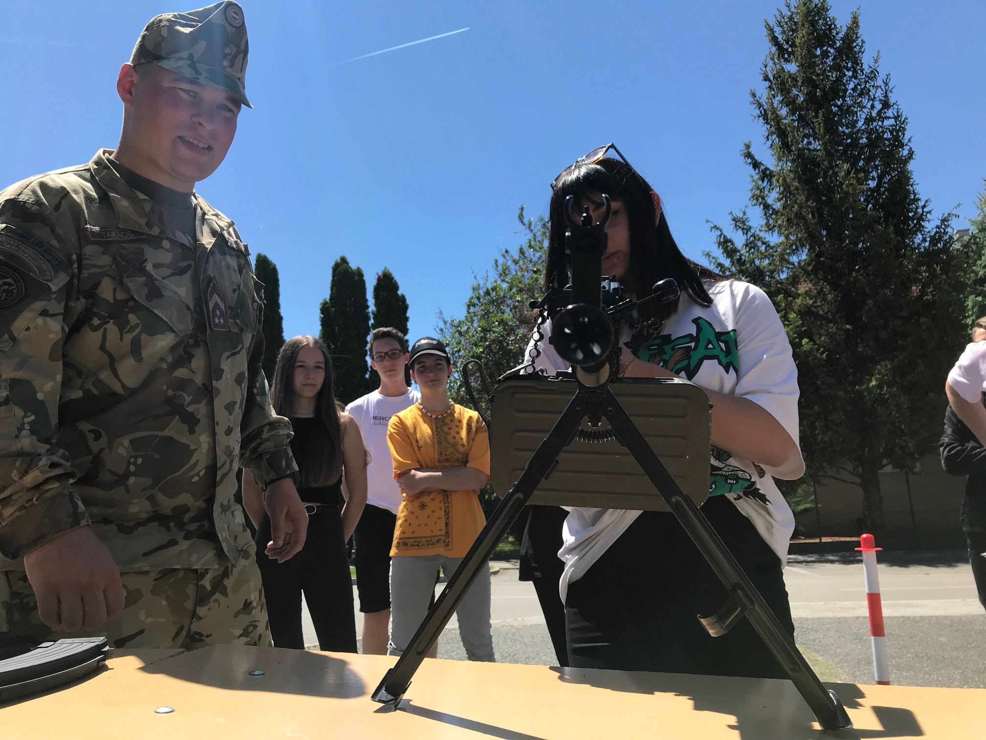 A gimnazisták kipróbálhatták a paintball és a lézer fegyvereket, mindemelett hatástalanított, a honvédségnél is rendszeresített fegyverbemutatón vehettek részt. A bátrabbak a vegyivédelmi felszerelést is magukra ölthették, a mentesítést pedig egy tehergépjármű kerekénél élhették át. A repeszálló mellény súlyát is viselhették egy ideig az iskolások, ahogy ismerkedhettek a karabély súlyával is. Igaz, csak gumiból készült a fegyver, de az igazival mindenben megegyező méretben. Izgalmas és vidám pillanatokat hozott a katonai teherautó húzó verseny, ahol még inkább kidomborodott a csapatban dolgozás fontossága és az egység megteremtése: ha nem egyszerre és nem jól húzott a csapat, a kerekek nem moccantak.